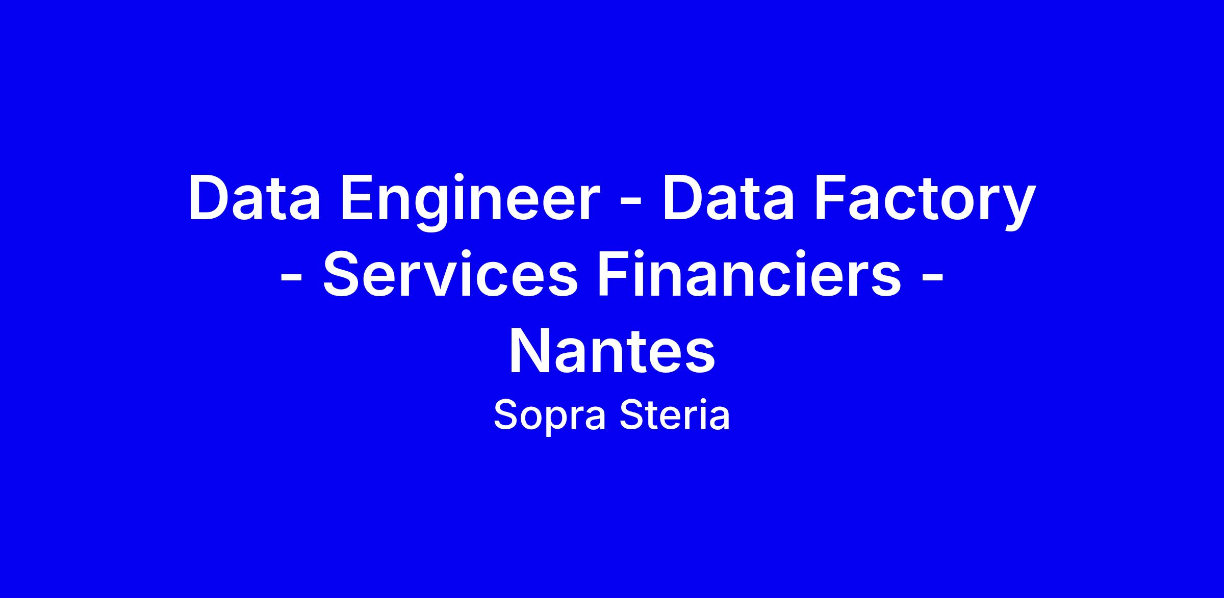 Intégrez Sopra Steria, acteur majeur de la Tech européenne, dans la Data Factory des Services Financiers à Nantes, où près de 100 Data Engineers travaillent sur l’ingestion, la construction de data hubs, la gouvernance et la valorisation de la donnée en contexte Cloud. Vous contribuerez à des solutions d’ingestion batch et streaming, à la structuration du Data Lake et à l’exposition des données au métier, avec une orientation CI/CD et veille technologique. Profil recherché: diplôme d’ingénieur ou équivalent, minimum 3 ans d’expérience, curiosité multi-technologies et envie d’une véritable évolution de carrière, ainsi que le goût du transfert de savoir. Pour postuler, privilégiez des réalisations concrètes, projets multi-technologies et démontrer votre impact client.