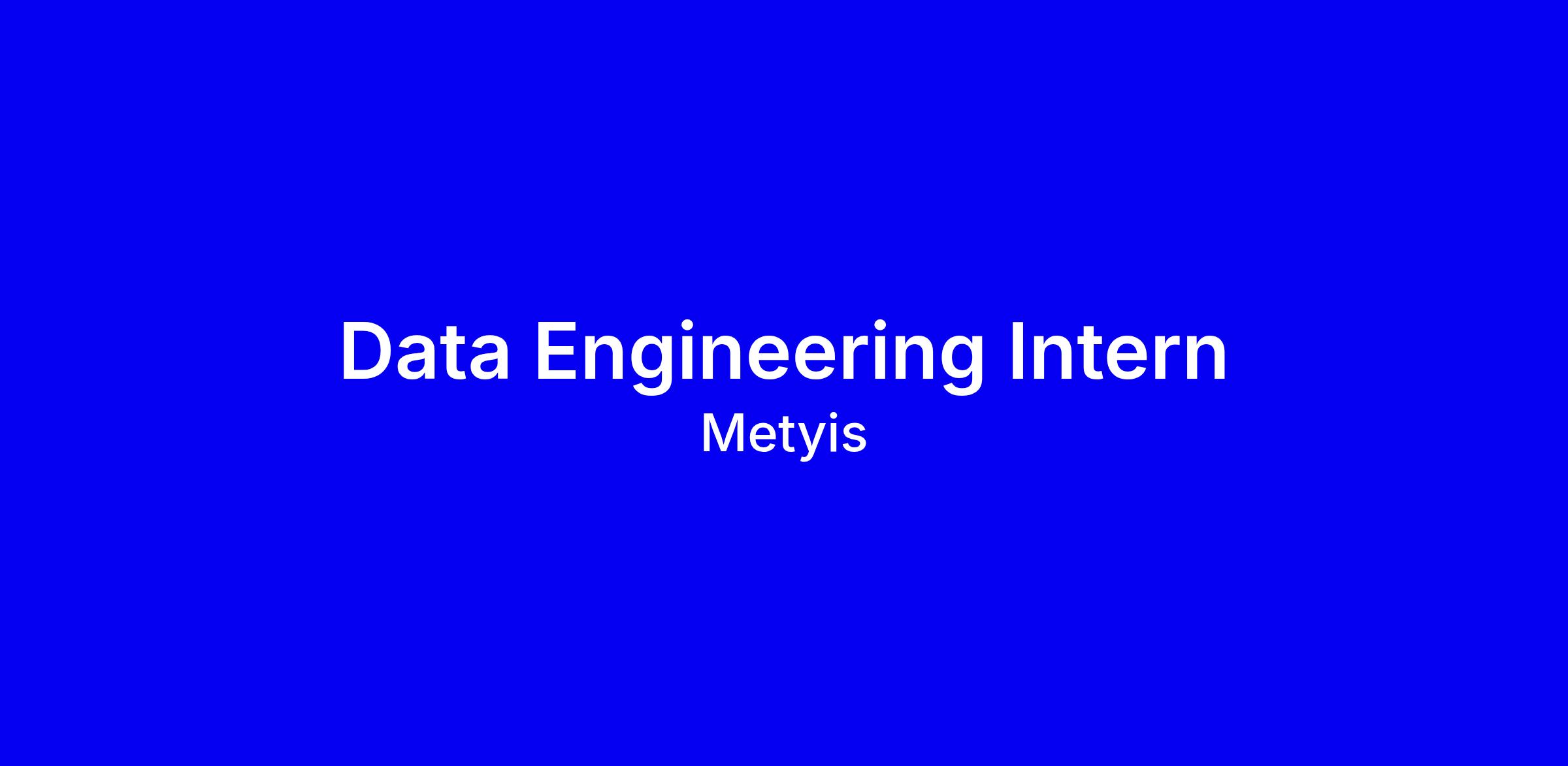 Metyis is growing! We are looking for a Data Engineering Intern to join our Data and Analytics team, in Amsterdam. As a Data Engineering Intern, you will be involved in turning our clients´ business into a more data-driven one.