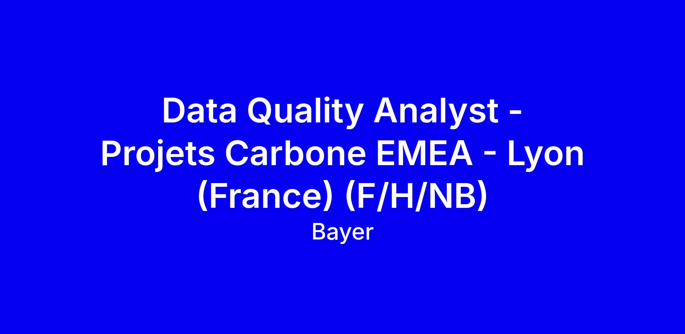 Data Quality Analyst - Projets Carbone EMEA - Lyon (France) (F/H/NB)