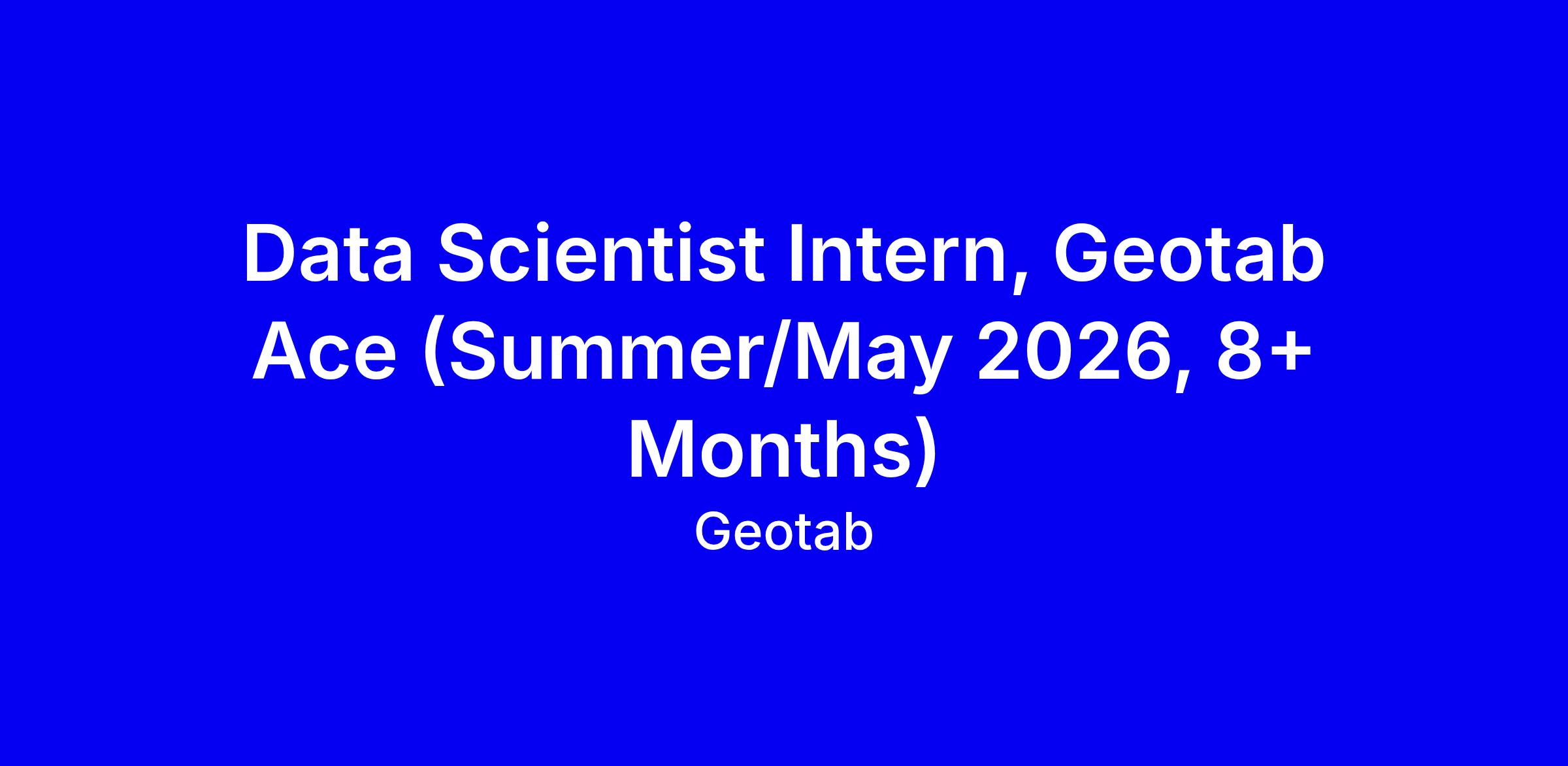 Geotab is seeking a Data Scientist Intern for an eight-plus month term starting May 2026 in Toronto, onsite, with a 37.5 hour work week and a GEO Launch orientation. You will join a team applying big data, ML and AI to build predictive models focusing on multi modal ingestion, contextual enrichment, proactive guidance, and refining RAG and text to SQL for BigQuery. The ideal candidate has a graduate degree in CS or related field, strong Python and SQL, and exposure to Spark or Beam and Airflow. We welcome applicants of varying experience levels and encourage you to apply even if not all requirements are met; include a concise project sample or GitHub link. Note agency resumes not accepted.