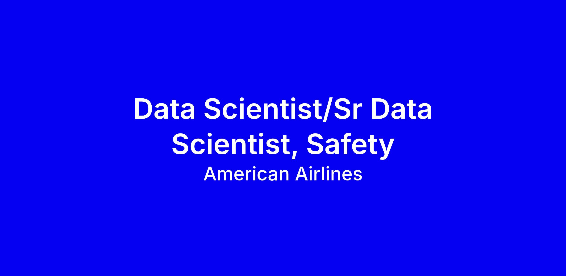 American Airlines is seeking a Data Scientist or Senior Data Scientist in Fort Worth, onsite, to join the Safety Science team and turn data into safer operations. You will build and maintain high fidelity predictive models that surface emerging safety trends, blend proprietary and public data sources, and partner with Data Engineers and Operations groups to drive risk based decisions. Ideal candidates bring 3+ years of hands on data science experience, an advanced quantitative degree, and fluency in SQL, Python, and R, plus expertise with Alteryx, Tableau and Power BI. Aviation or high reliability experience is a plus. To apply, tailor your resume to show measurable safety impacts, dashboards or storytelling you created, cross functional collaboration, and your ability to influence leadership, while highlighting your enthusiasm for safety, willingness to work onsite in Fort Worth, and alignment with American Airlines culture and benefits.