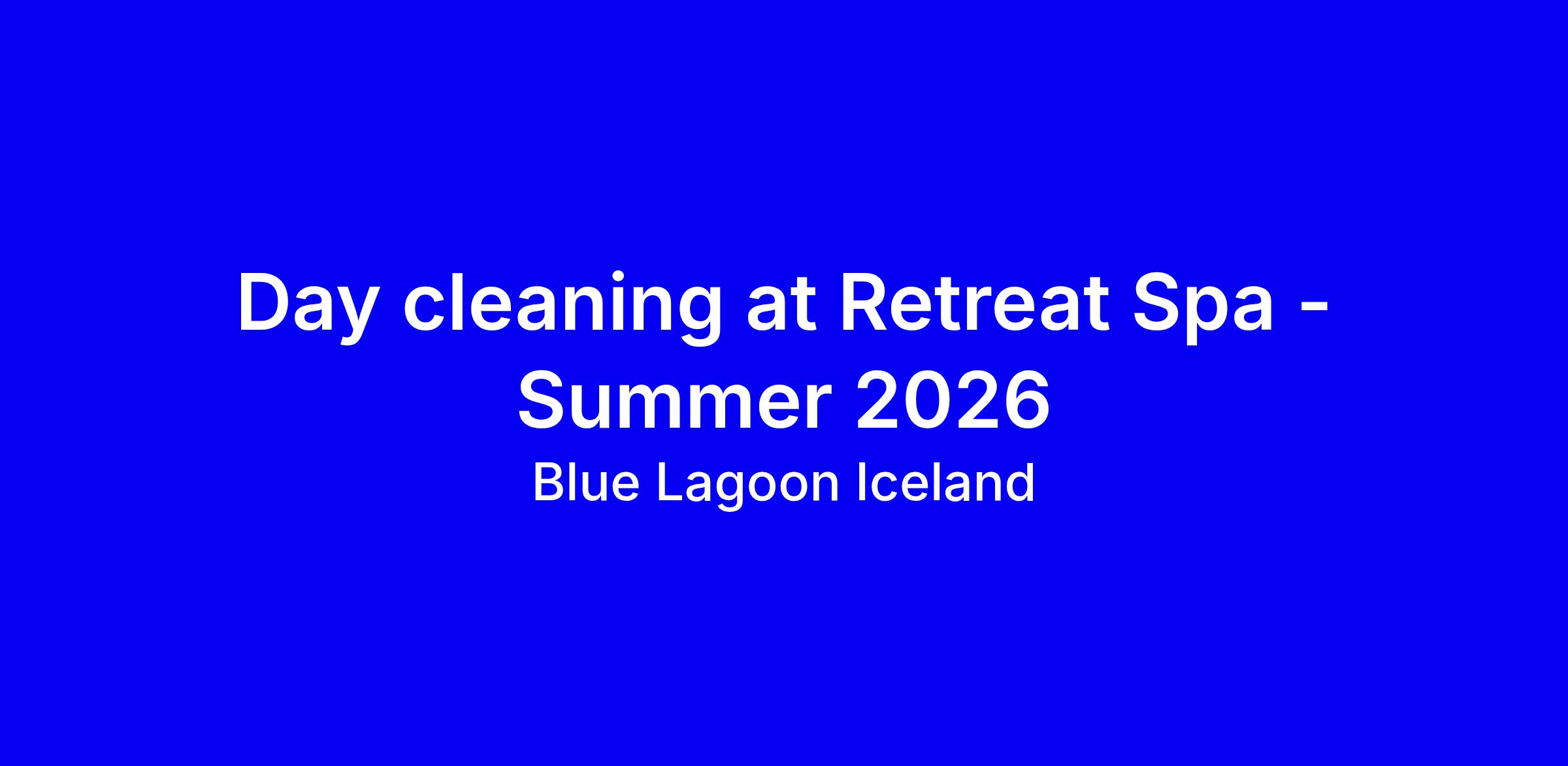 Blue Lagoon Iceland is hiring for day cleaning at Retreat Spa for Summer 2026. This full-time onsite role focuses on cleaning luxury private changing rooms and keeping the Retreat spa tidy to support a high quality guest experience. The ideal candidate demonstrates strong communication and teamwork, reliability and punctuality, the ability to work independently, conscientiousness and attention to detail, good English, and is at least 18; a shift-based schedule applies. Applications close April 13, 2026. Benefits include meals, access to Blue Lagoon, and partner discounts in Iceland, within a cooperative, diverse, family friendly workplace. To apply, tailor your resume to show relevant cleaning and customer-service experience and your summer availability, and submit by the deadline with references if possible.