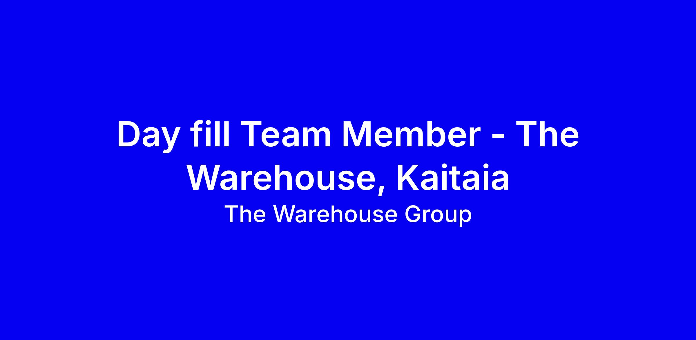 Day Fill Team Member at The Warehouse Group in Kaitaia focuses on restocking shelves before trading, clearing stockrooms, and displaying products, with planogram adherence, pricing, clear ticketing, signage and a tidy store. Shifts Sundays 1:30pm to 9pm and Mondays 2pm to 9pm. You’ll thrive if you’re reliable, enjoy tackling tasks, and work well in a team. Legal eligibility requires being over 16, having reliable transport and being physically fit for heavy lifting. Benefits include staff discount, a paid birthday day off, ongoing training, and clear career progression. How to apply: tailor your CV to show reliability, stock handling, following plans, attention to detail, and teamwork; mention availability and transport; align with sustainability goals.