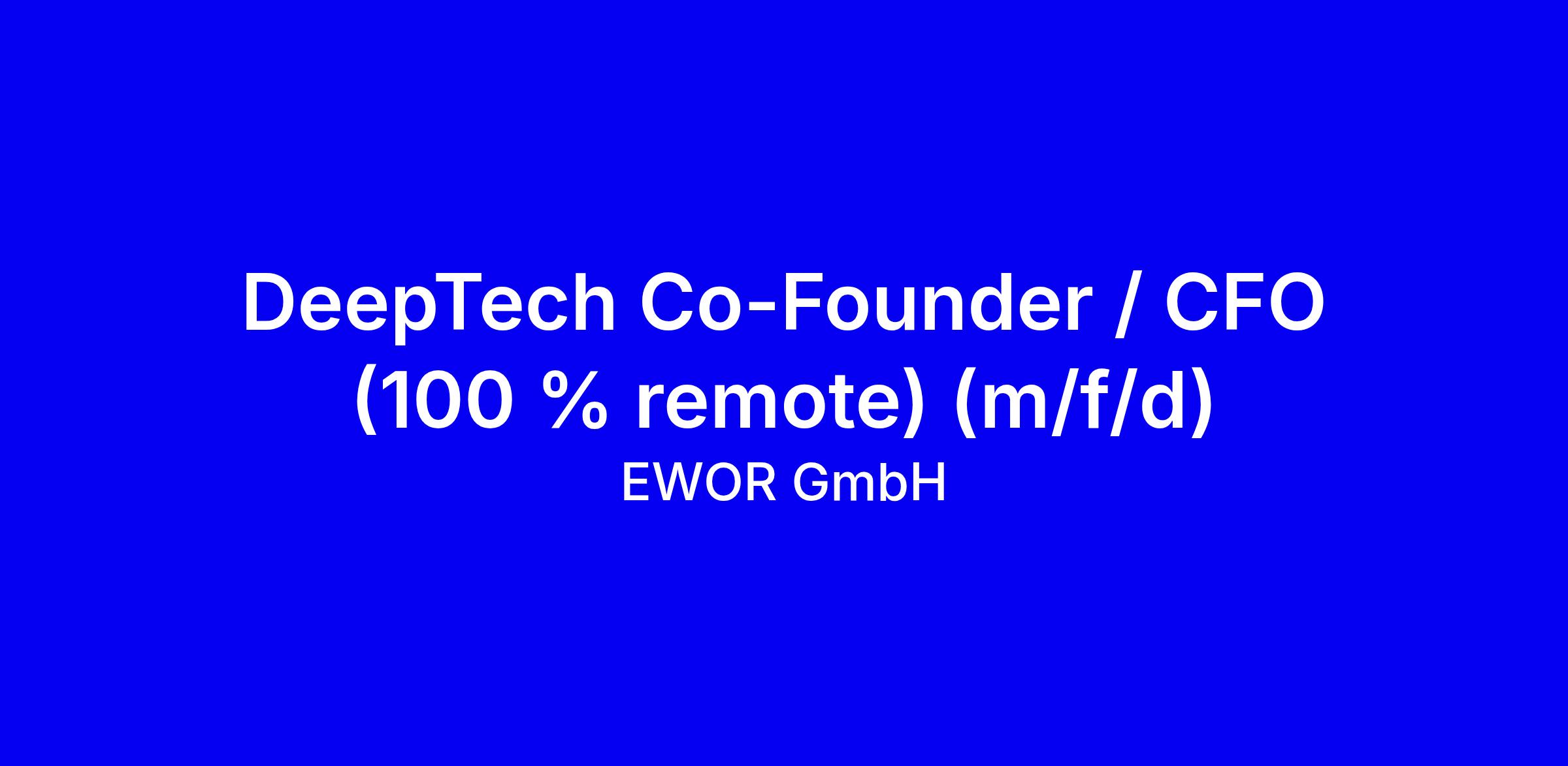 EWOR seeks an ambitious DeepTech founder and CFO to own, build, and scale a startup to €100M+ in revenue, with 100% remote work and a path to multi-million funding. You’ll receive weekly sparring with unicorn founders, access to a network of 50,000 professionals, and coaching to reach product market fit and rapid growth, plus funding support to secure multi-million rounds within 12 months. Requirements: based in Europe or the Americas or willing to relocate, full ownership mindset, excellent English. When applying, lead with credible DeepTech traction, a clear PMF plan and a realistic fundraising strategy, and show strong leadership and hiring ability; indicate salary or funding preference.