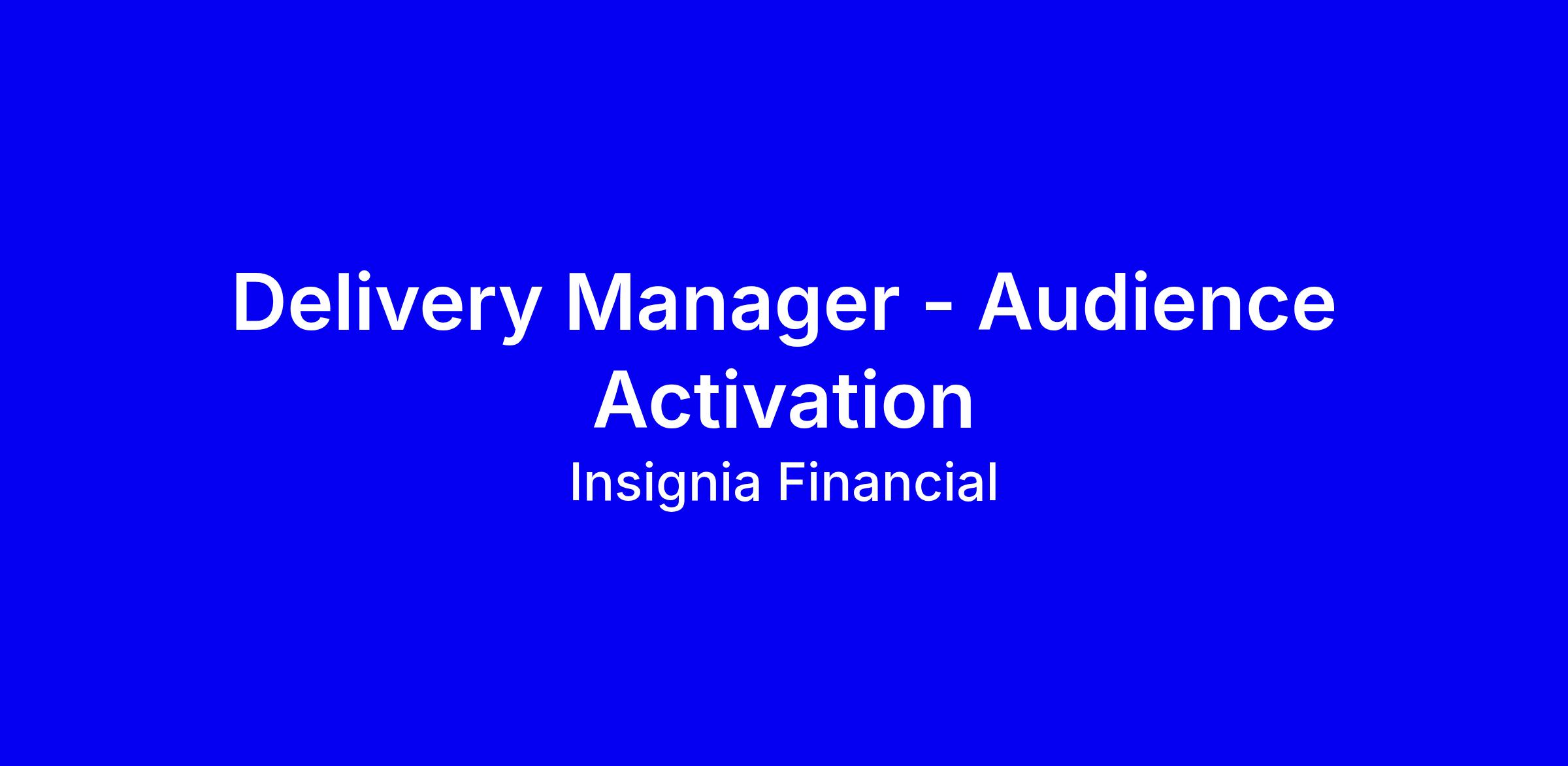 Insignia Financial seeks a Delivery Manager to lead the Audience Activation capability, steering the Customer Data Platform and consent platform from discovery to scale. This 12 month max term onsite Sydney role requires owning roadmaps for identity and activation, consent orchestration and activation, while keeping outcomes aligned with milestones. Bring proven experience delivering data or MarTech transformations, strong agile leadership, and familiarity with Adobe Experience Cloud, Salesforce Marketing Cloud and cloud platforms such as AWS or GCP, plus data governance and regulatory compliance. To apply, tailor your CV to show business value, confirm you can work in Australia and are willing to undergo police and credit checks. Agencies not considered; adjustments available on request.