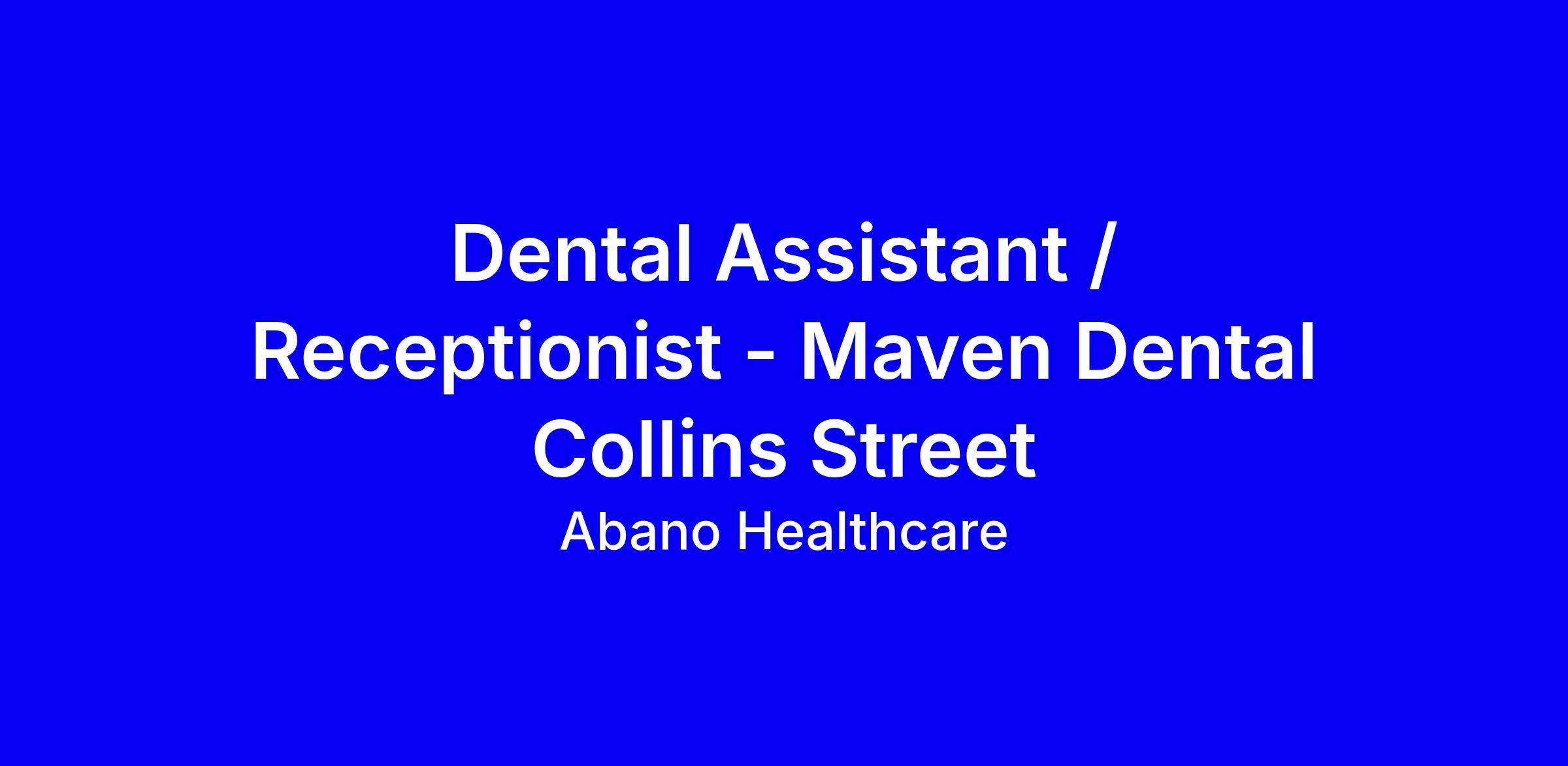 Maven Dental Collins Street in Melbourne is hiring a full-time Dental Assistant/Receptionist to join a team backed by Australasia’s largest dental group. Expect a stable role with work life balance, no weekends or late nights, and training. You’ll handle reception duties, greet patients, record and process payments, provide chairside assistance, sterilise instruments, and keep the clinical area clean. Ideal candidates have dental experience or familiarity with terminology, strong communication, attention to detail, and the ability to multitask in a fast paced setting, plus proficiency with dental software. To apply, you’ll receive a short automated Q&A; answer when you can and we’ll be in touch. Check your inbox and apply now.