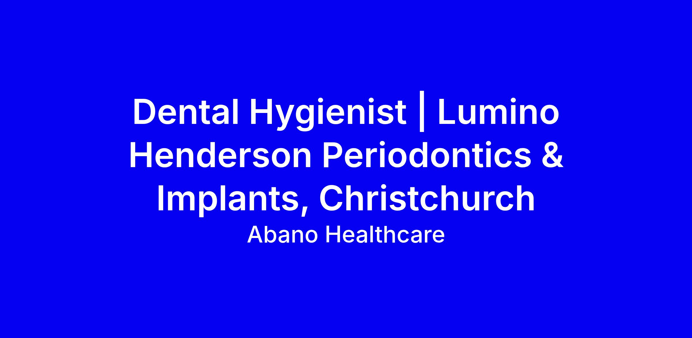 Lumino Henderson Periodontics in Christchurch is seeking a Dental Hygienist or Oral Health Therapist to join a growing, respected practice within Abano Healthcare. This full-time onsite role offers a four-day week (Mon to Thu, 8:15 am to 5:00 pm), a fully booked patient list, in-house referrals, competitive pay with flexible remuneration, training allowances, and opportunities to join educational evenings and study groups. You’ll collaborate with experienced periodontists, promote preventive care, and help connect gum health to overall wellbeing. To apply, show DCNZ registration or eligibility, APC status, strong communication and patient-centred care, and team orientation. Relocation assistance available; contact Janelle Combe at [email protected] or 027 880 4117.
