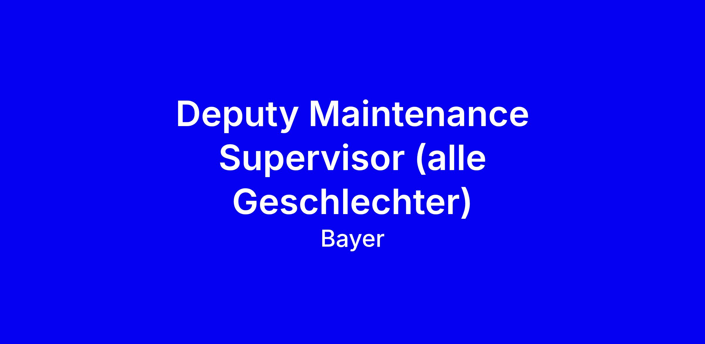 Deputy Maintenance Supervisor (alle Geschlechter)