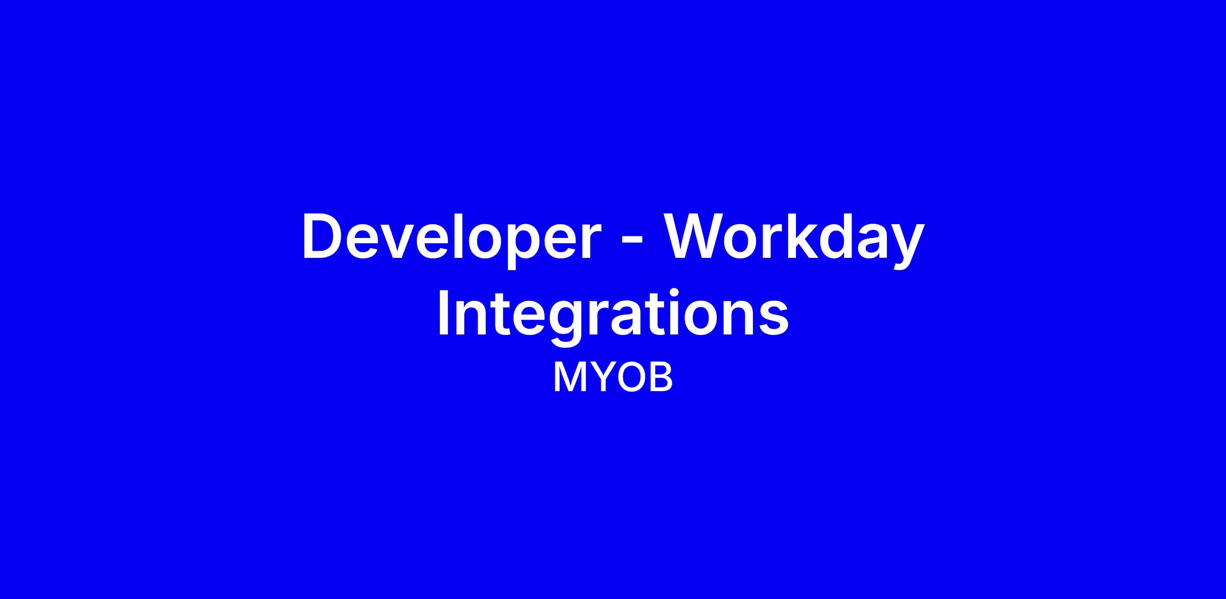 About the role MYOB is redefining Order to Cash on Workday. As our Workday Integration Developer, you’ll take end-to-end ownership of the integration landscape, where you will be crafting, delivering, and running secure, high-performing integrations across Workday Financials and connected platforms.