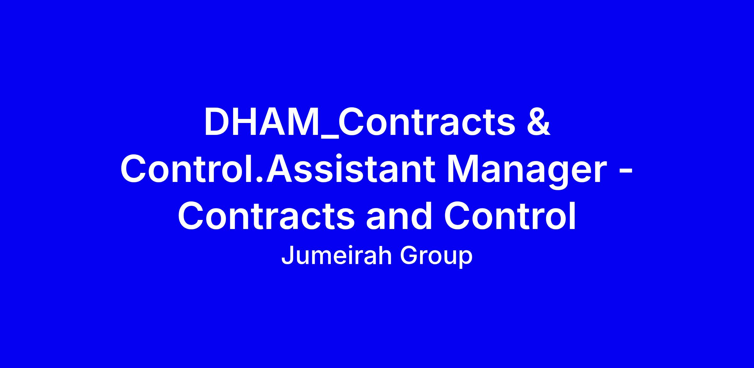 An opportunity has arisen for a Assistant Manager – Contracts & Control to Join Dubai Holding Asset Management. The main duties and responsibilities of this role: