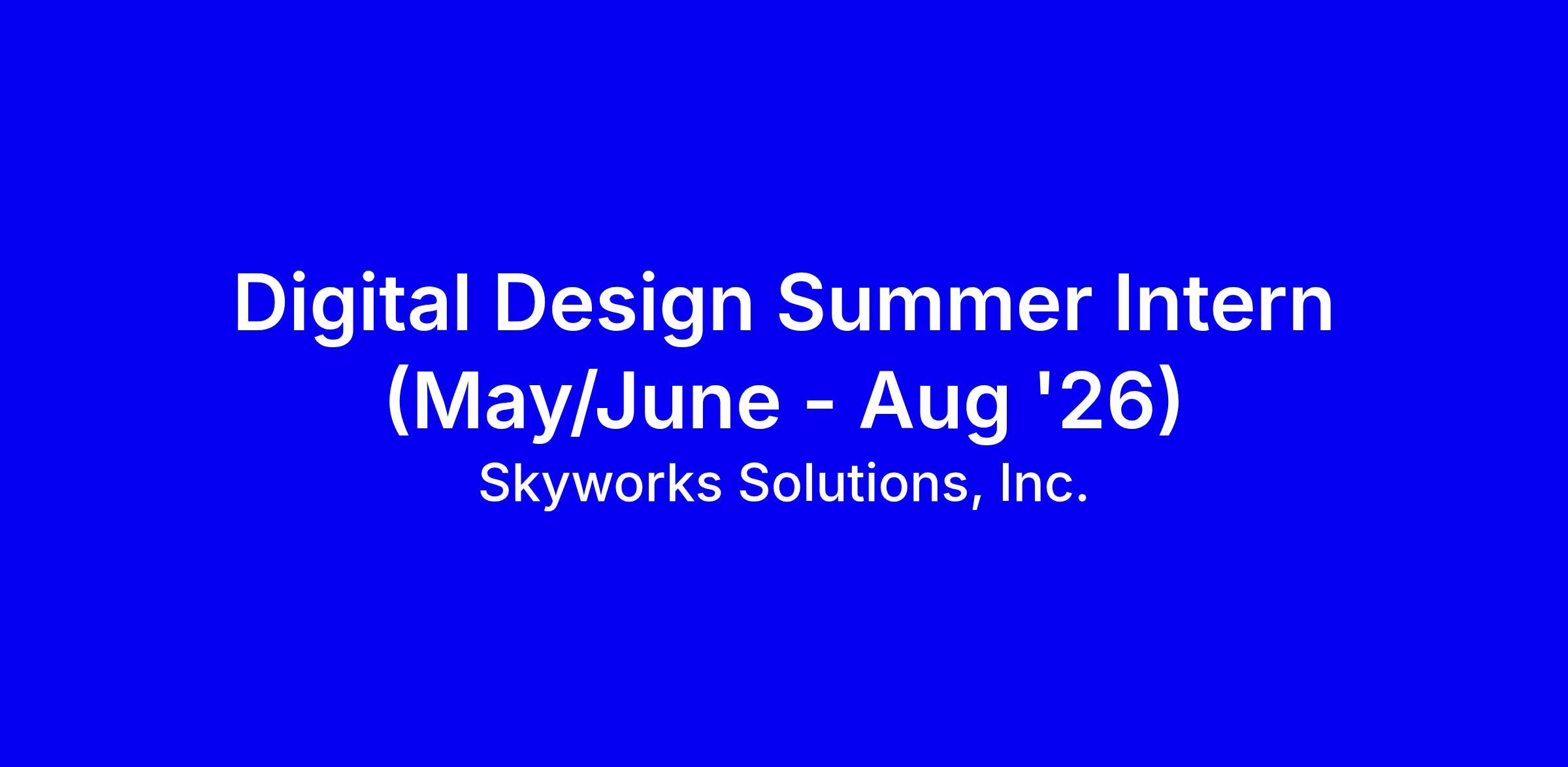 Skyworks Solutions seeks a Digital Design Summer Intern in Austin, TX for May/June through Aug 2026 to participate in the full IC design cycle from concept to production, including RTL coding (Verilog/SystemVerilog), digital back-end, verification, and firmware for some devices. The role rewards curiosity, collaboration, and hands-on problem solving in a fast-paced, globally connected team. Ideal candidates hold a BS or MS in Electrical or Computer Engineering and can show HDL design, digital verification, UNIX familiarity, and willingness to work across digital, firmware, and test. To apply, tailor your resume to HDL coding, verification methods, IO interfaces (I2C/SPI), and any 130-22 nm project experience; highlight teamwork and project ownership. Also emphasize trade-offs in clocks, memory, and power and a drive for contributing to high-volume production.