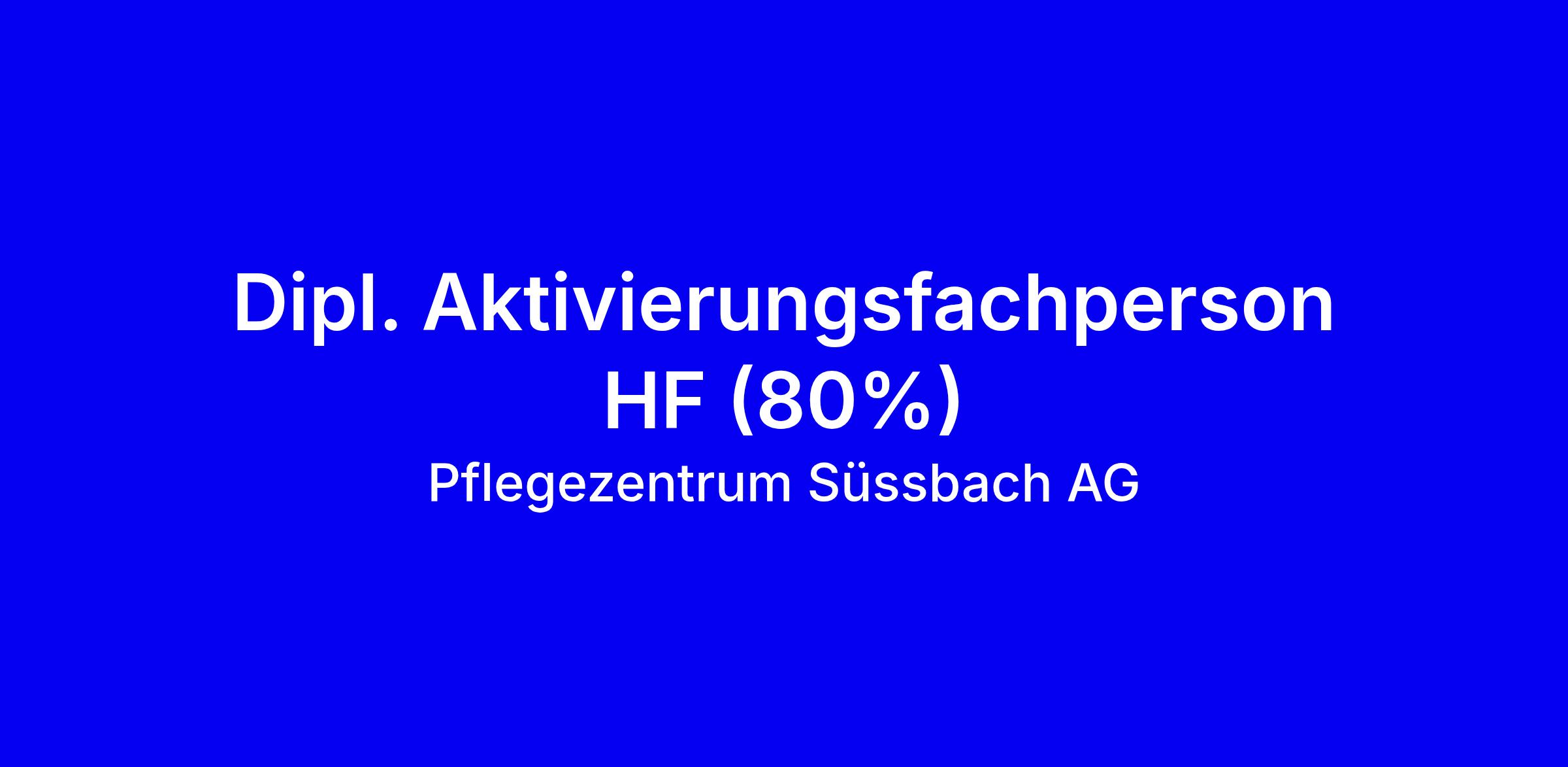 Die Stelle Dipl. Aktivierungsfachperson HF (80%) beim Pflegezentrum Süssbach AG in Brugg bietet eine anspruchsvolle Teilzeitaufgabe: Planung, Durchführung, Dokumentation und Evaluation von Aktivierungsangeboten, Verantwortung für die Aktivierung auf einer Pflegestation, Organisation von Veranstaltungen und Begleitung eines HF-Studierenden in einem interdisziplinären Team. Erwartet werden eine abgeschlossene HF-Ausbildung, Berufserfahrung in der Aktivierung, hohe Eigenverantwortung, organisatorische Fähigkeiten, EDV-Kenntnisse (Word, Outlook, epDok), gute Deutschkenntnisse sowie Flexibilität, Teamfähigkeit, Belastbarkeit und Empathie. Das Süssbach bietet abwechslungsreiche Tätigkeit, unterstützendes Team, individuelle Einarbeitung und attraktive Zusatzleistungen wie Prämien, Fitnesscenter-Konditionen, Restaurantrabatte, Pensionskassenbeteiligung und Zooeintritte. Bewirb dich online; Fragen an Ursi Läuchli, Tel. 056 462 67 96; Start am 1. Juli 2026 oder nach Vereinbarung. Tipp: Hebe in deiner Bewerbung konkrete Aktivierungsprojekte, eigenständige Planung und Teamarbeit hervor.