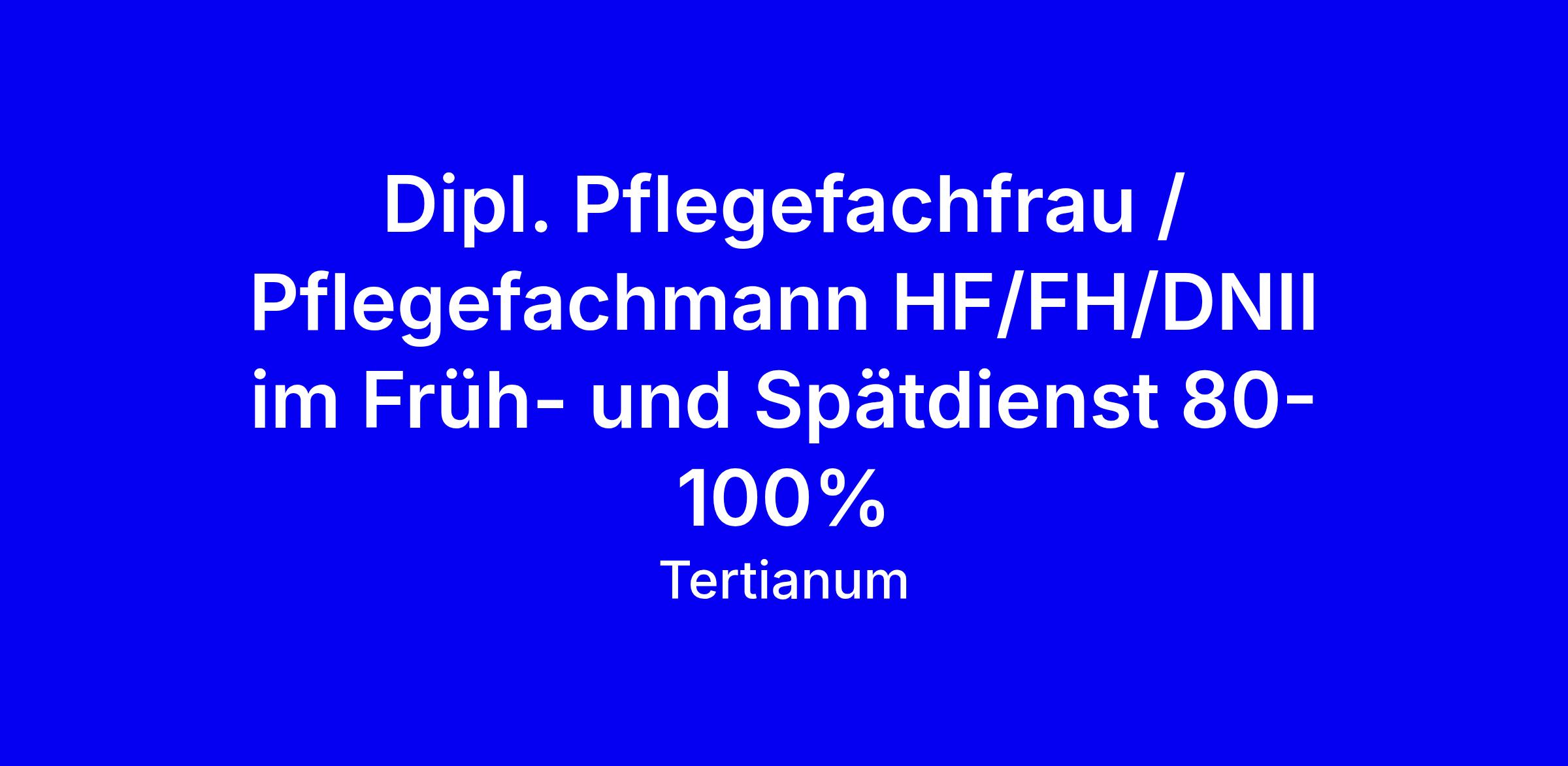 Dipl. Pflegefachfrau / Pflegefachmann HF/FH/DNII im Früh- und Spätdienst 80-100%