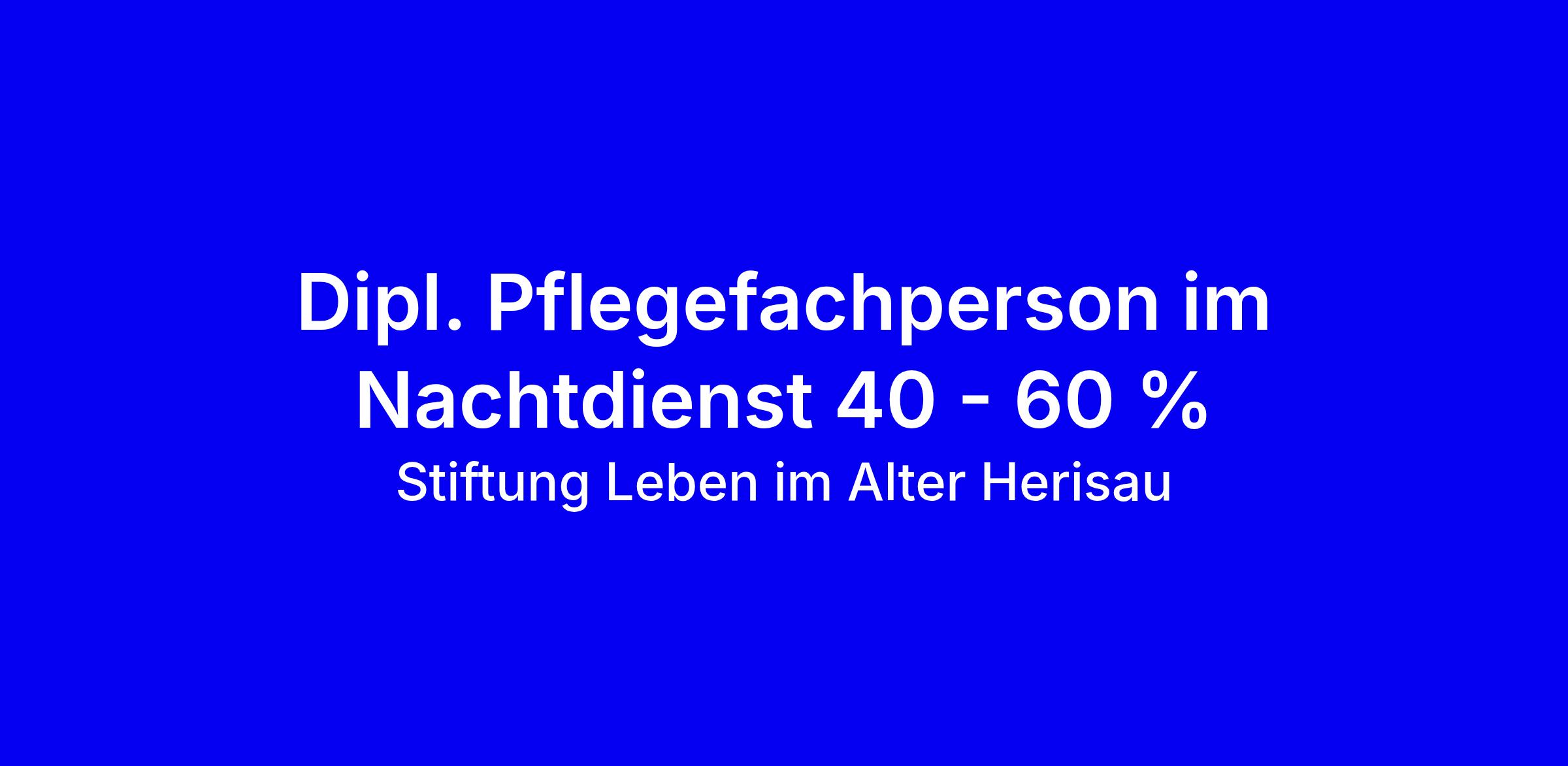 Die Stiftung Leben im Alter Herisau sucht eine dipl. Pflegefachperson im Nachtdienst für 40 bis 60 %, die auf den Demenzstationen Bewohnende achtsam betreut und sie durch die Nacht begleitet. Beginn 1. Juni 2026 oder nach Vereinbarung. Sie verfügen über eine abgeschlossene Ausbildung als dipl Pflegefachperson HF oder eine gleichwertige, in der Schweiz anerkannte Ausbildung, bringen Berufserfahrung in Langzeitpflege oder Gerontopsychiatrie mit, arbeiten sicher mit der Pflegedokumentation ePDocs, haben IT-Kompetenz und gute Deutschkenntnisse. Teamorientierung, Verantwortungsbewusstsein und eine liebevolle, menschenfreundliche Haltung sind zentrale Werte. Wir bieten eine umfassende Einarbeitung, interne Fortbildungen, fünf Wochen Ferien, ab dem 50. Lebensjahr sechs, Teilkostende Kinderbetreuung sowie weitere Vergünstigungen und kollegiale Unterstützung. Bewerbung mit Fokus auf Nacht- und Demenzpflege, Referenzen und einem kurzen Anschreiben; bei Fragen wendet euch an Angelika Rutz, Bereichsleiterin Betreuung und Pflege, +41 71 354 75 37.