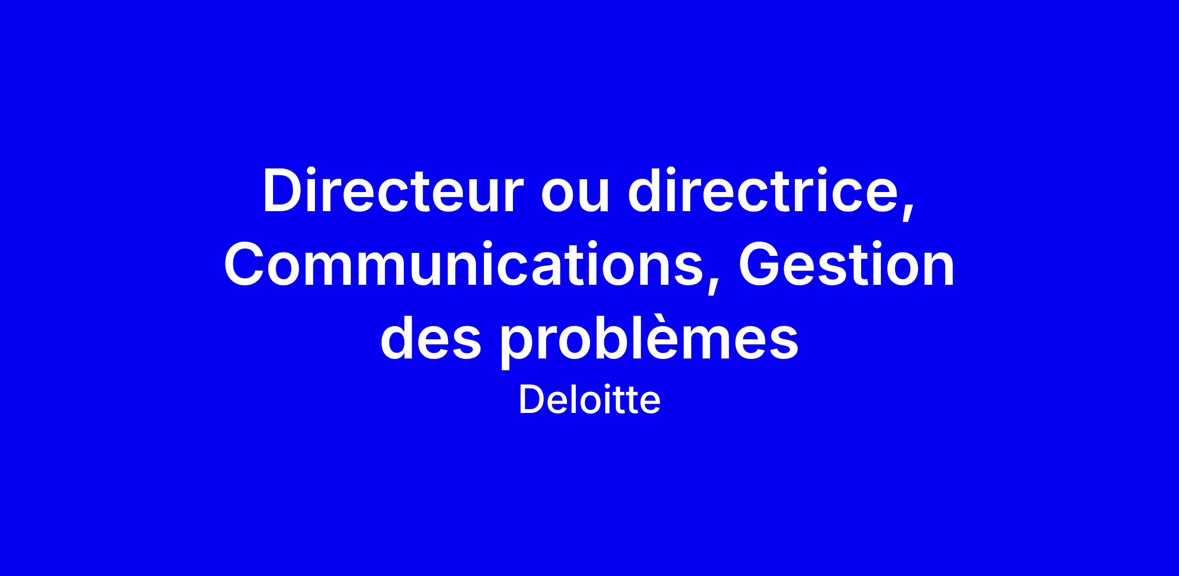 Ce poste de Directeur ou Directrice, Communications, Gestion des problèmes chez Deloitte vous place au cœur de la gestion de la réputation, avec la responsabilité de prévenir et traiter les enjeux médiatiques, de coordonner les communications internes et externes et d’élaborer des stratégies de relations publiques. Idéal pour un professionnel dix ans d’expérience en relations publiques, capable de conseiller les dirigeants et de gérer des situations sensibles dans des environnements réglementés; l’anglais est requis, le français est un atout. Rémunération entre 85 000 et 156 000 CAD, cadre hybride et avantages. Conseils: adaptez votre CV, illustrez des crises gérées et des résultats mesurables, préparez des messages clés et des scénarios, et montrez un leadership aligné sur la culture Deloitte.