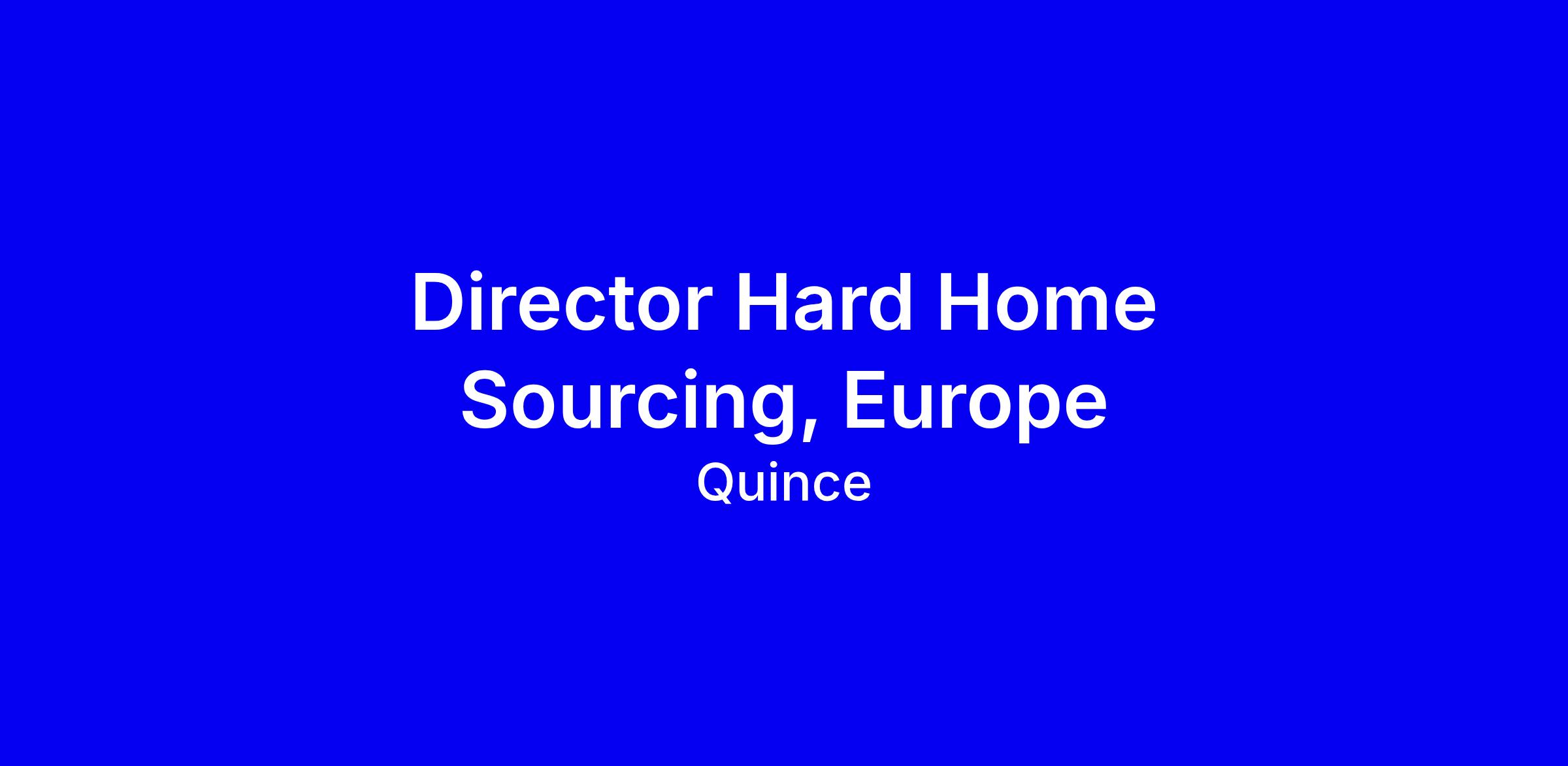 We are seeking a Director Hard Home Sourcing, Europe to join our growing team. The Director, Hard Home Sourcing Europe role is a critical, net-new leadership role responsible for building Quince’s European Hard Home sourcing ecosystem from the ground up, with an initial focus on furniture and selective expansion into kitchen, tabletop, and decorative accessories. This role is explicitly designed as a heavy player/coach position. The successful candidate will bring a deep,