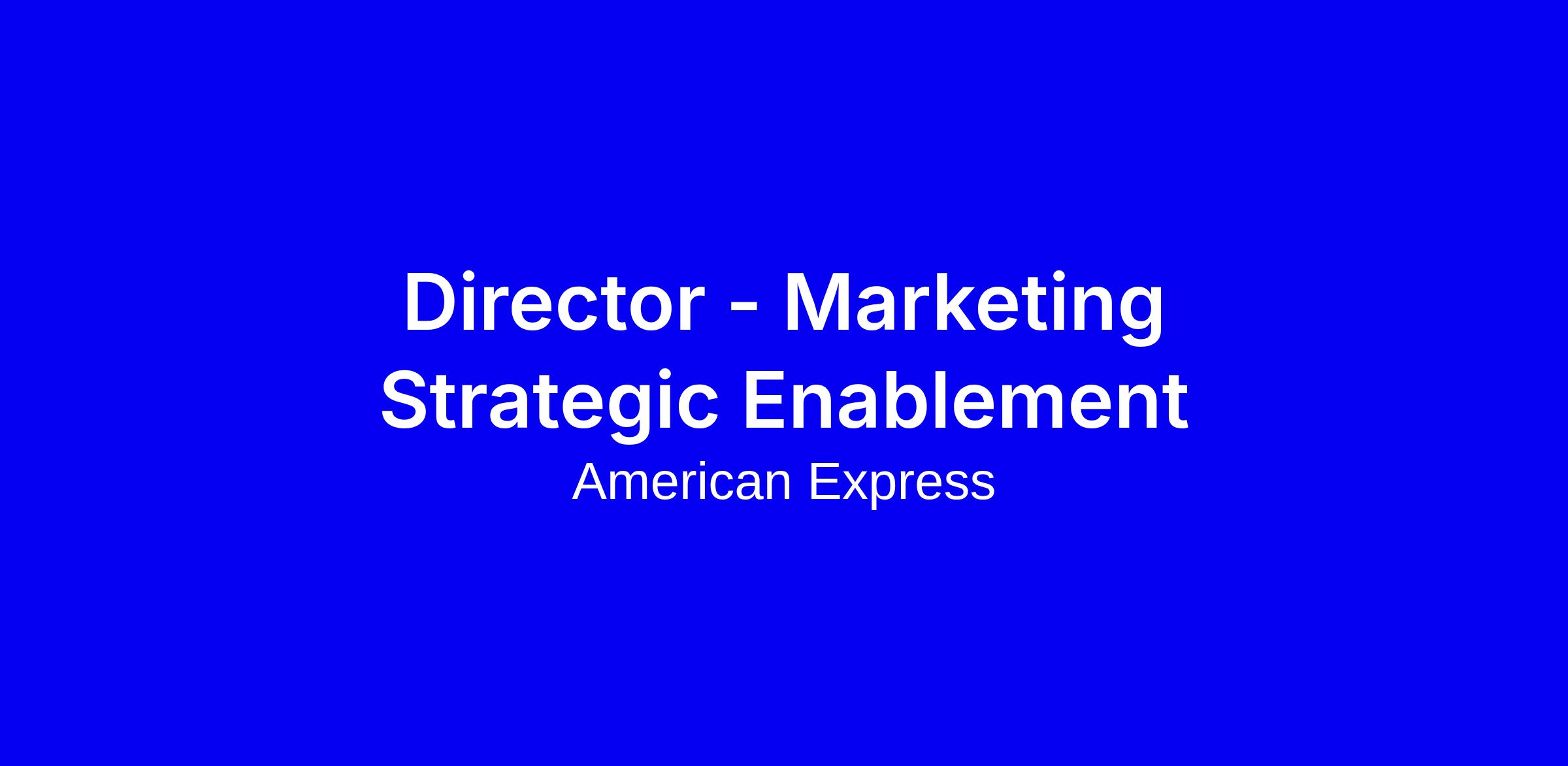 The Director, Marketing Strategic Enablement will be responsible for ensuring Consumer Marketing operates in accordance with our promises to cardmembers and meets all regulatory obligations. The successful candidate will define and activate a new strategy and programmatic infrastructure that enables strong compliance and controls for marketing execution.