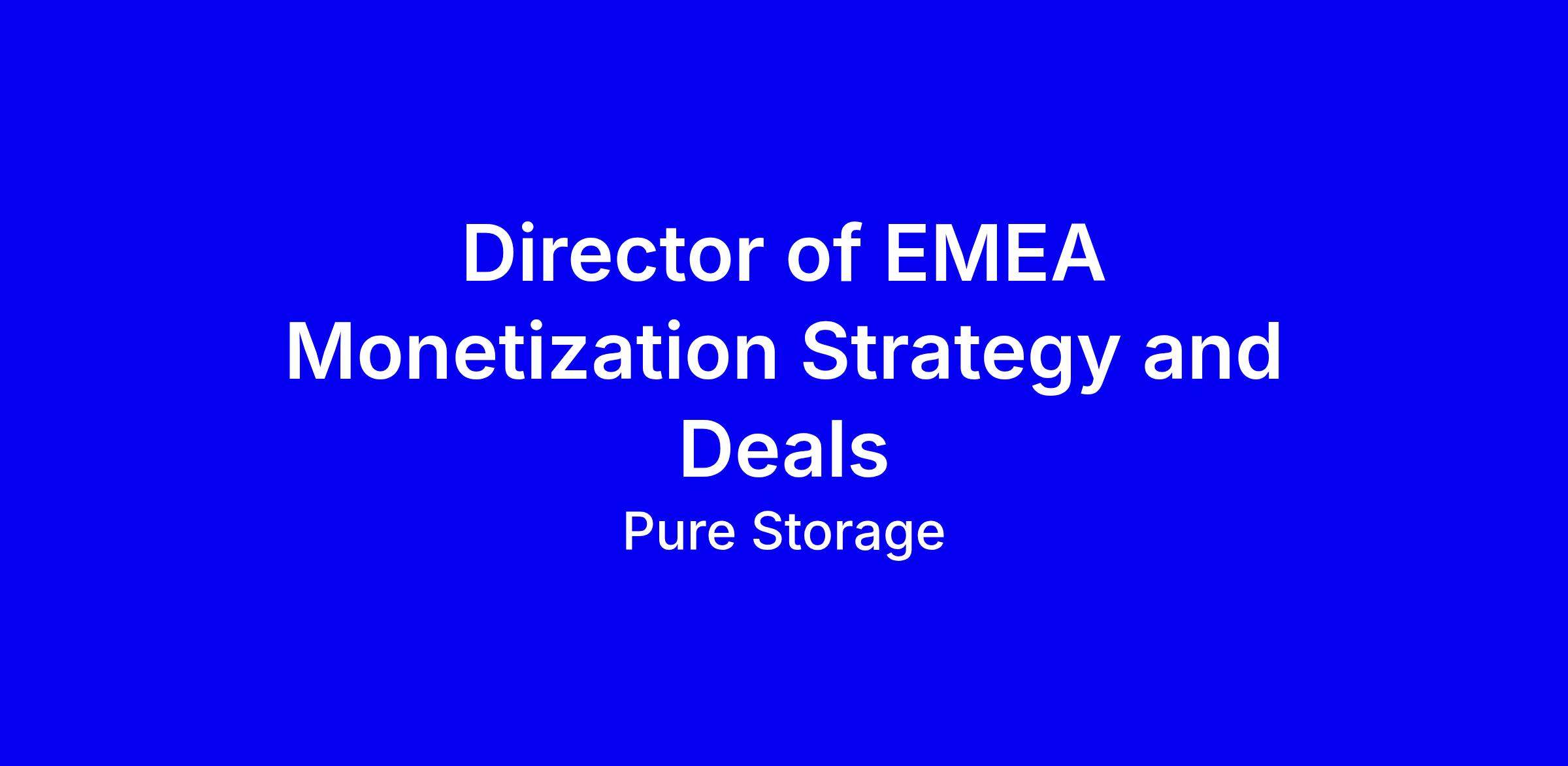 Pure Storage is hiring a Director of EMEA Monetization Strategy and Deals to lead the MSD team through its largest, most complex transactions, acting as the primary partner to Global GTM and aligning Sales, Legal, Finance and Product to close game changing deals. The role demands advanced deal structuring, rigorous financial modeling, strategic storytelling, and the ability to drive cross functional execution while accelerating profitability and market share in EMEA. You will lead, mentor, and scale a high performing team, embed data driven decision making, and leverage AI tools to boost efficiency. To apply, emphasize 12+ years in deal desks or strategy, quantify wins, share examples of non standard pricing, and demonstrate executive influence; and confirm willingness to work onsite at the Staines HQ.