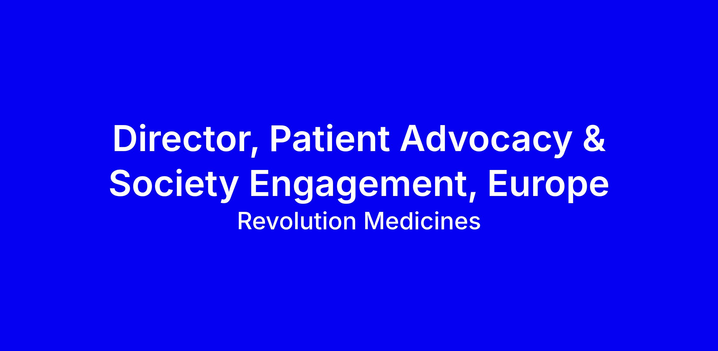 Revolution Medicines seeks a Director, Patient Advocacy & Society Engagement for Europe to lead EU patient advocacy, society engagement, and access programs in medical affairs. You will design and drive European EAP activities, oversee core and extended teams and vendors, and partner with regional leaders to align advocacy with the European strategy while building relationships with patient and physician societies. The ideal candidate has 8+ years in oncology EAP or 7+ years advocacy with 5+ in biotech, a life sciences advanced degree, and a proven ability to design, measure, and deliver patient centric programs with cross functional leadership and regulatory awareness. To apply, tailor your CV and cover letter to show oncology advocacy leadership, stakeholder engagement, and measurable patient outcomes, cite Europe examples, and demonstrate a tireless commitment to patients aligned with RevMed values; onsite Basel.