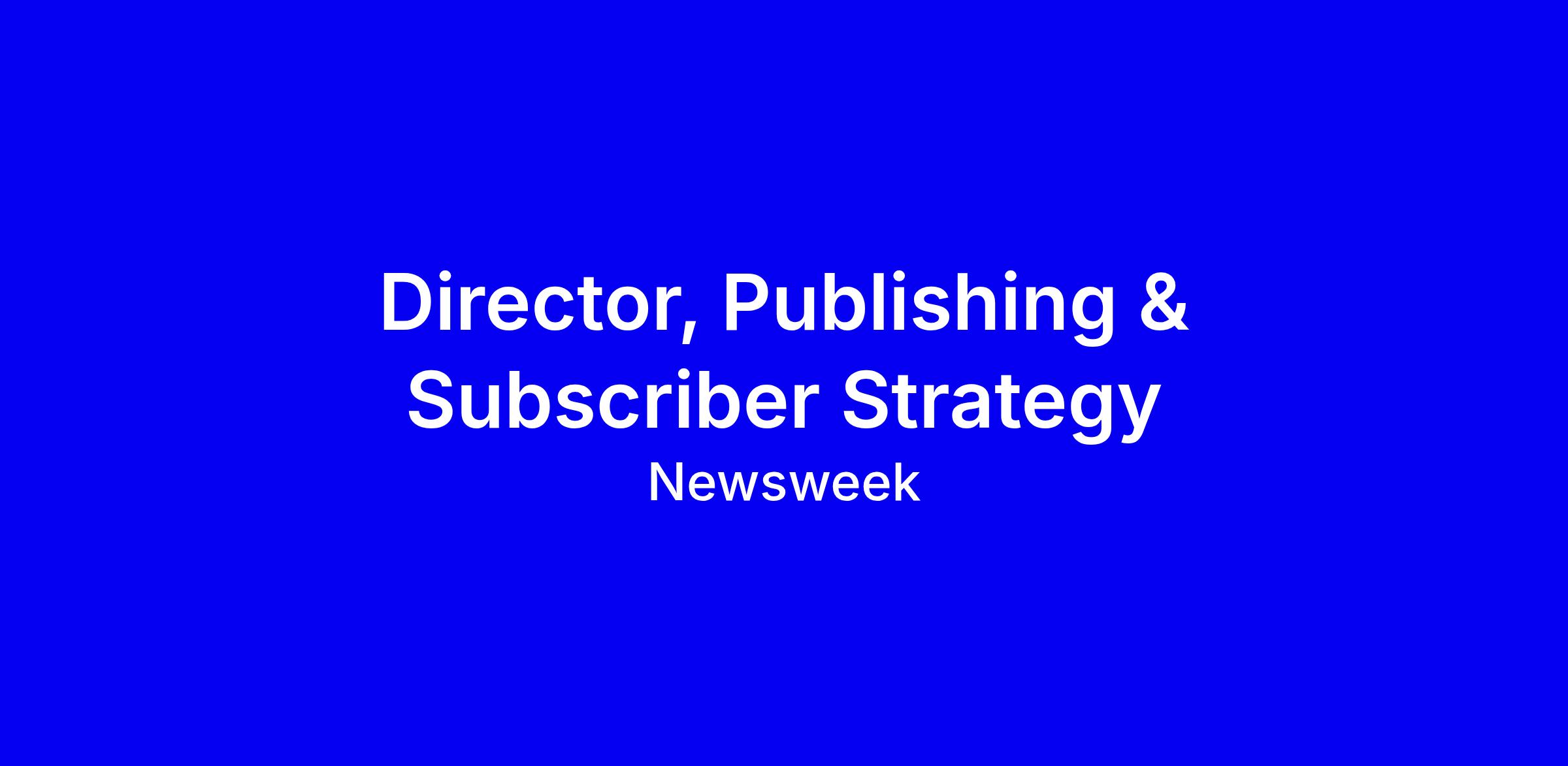Newsweek is hiring a Director, Publishing & Subscriber Strategy to lead subscriber publishing remotely in the UK. You will oversee planning, commissioning, and delivery of content, turning strategy into actionable editorial workflows, and line-managing editors and creators while collaborating with homepage, newsletters, product, and editorial teams. The ideal candidate brings senior editorial leadership in a digital newsroom or publishing house with a subscription focus, the ability to deliver at pace, operational discipline, and U.S. and international news judgment plus knowledge of media law. Experience with AI tools, data insights, and collaboration is essential. In your application, highlight leadership, workflow design, commissioning and coaching results, subscriber initiatives, and alignment with Newsweek values.