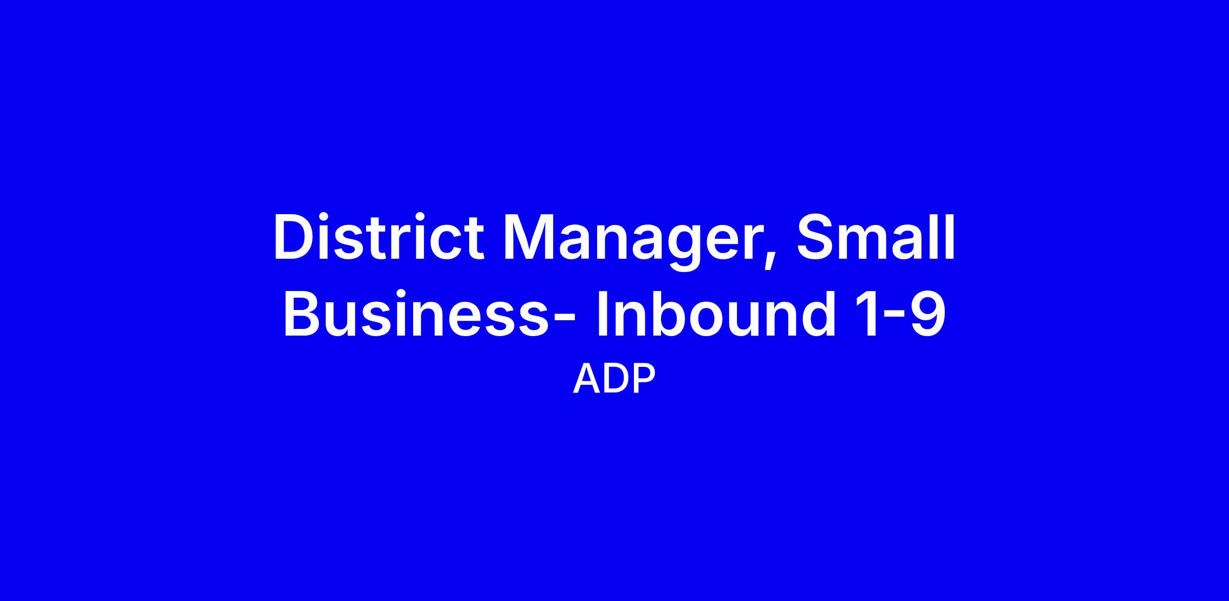 ADP is hiring a District Manager, Inside Sales (1-9).