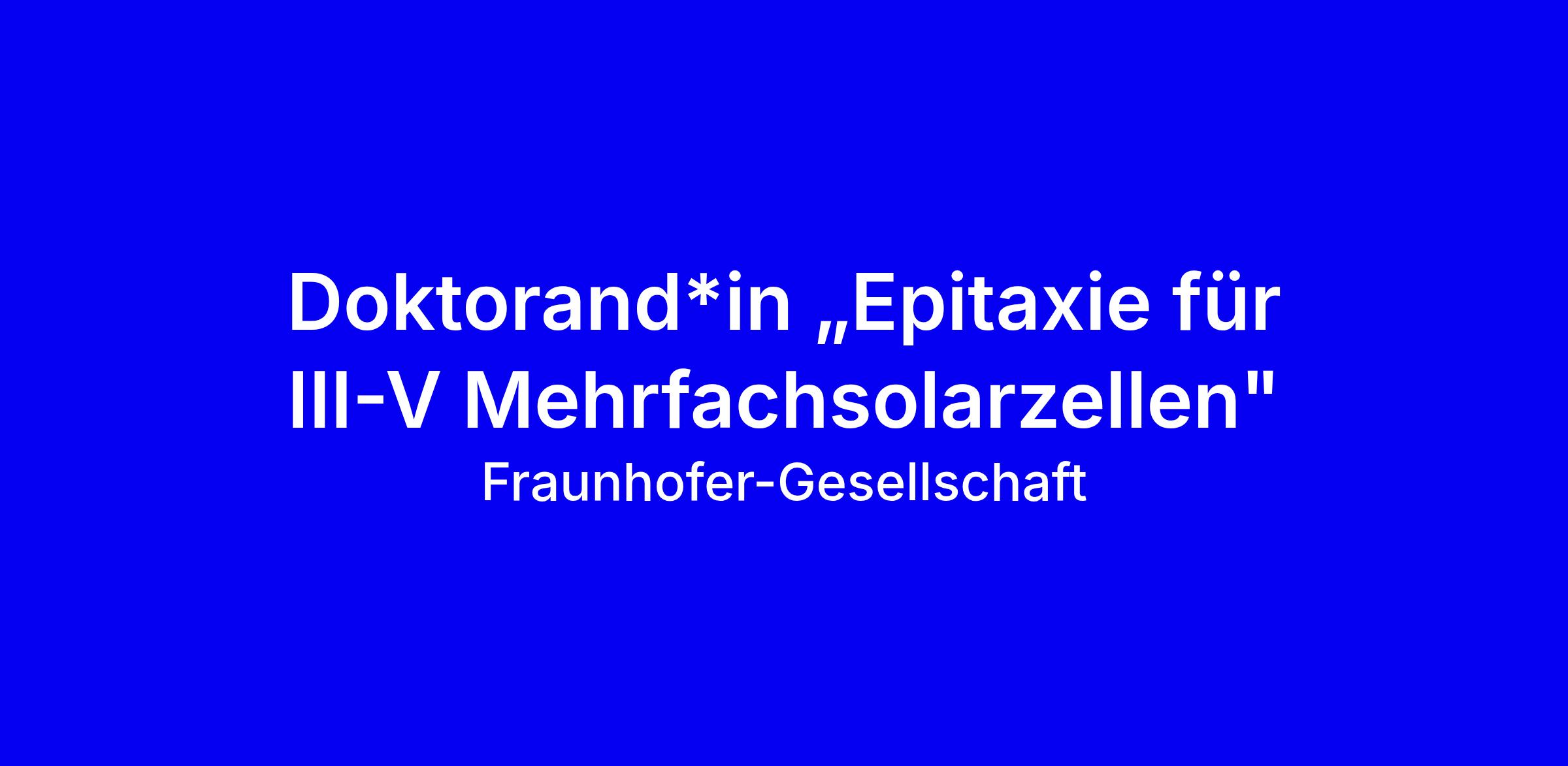 Als eines der weltweit größten Solarforschungsinstitute leistet das Fraunhofer-Institut für Solare Energiesysteme ISE einen wesentlichen Beitrag für eine nachhaltige, wirtschaftliche, sichere und sozial gerechte Energieversorgung weltweit. Unser Ziel ist es, die Energiewende mit konkret umsetzbaren technologischen Lösungen voranzutreiben – durch exzellente Forschungsergebnisse, erfolgreiche Industriekooperationen und Firmenausgründungen. Hierfür forschen wir mit unseren rund 1.300 Mitarbeitenden in den vier Schwerpunkten Energiebereitstellung, Energieverteilung, Energiespeicherung und Energienutzung. Die hochmoderne FuE-Infrastruktur des Fraunhofer ISE mit 22 300 m² Laborfläche ermöglicht Spitzenforschung auf internationalem Niveau. In der Abteilung "III-V-Photovoltaik und Konzentratortechnologie" entwickeln wir Mehrfachsolarzellen aus III-V Verbindungshalbleitern wie Galliumarsenid oder Galliumindiumphosphid. Hierdurch erreichen wir höchste Wirkungsgrade für die Umwandlung des Sonnenlichts in elektrischen Strom von 47,6% und halten den Rekord für die effizienteste Solarzelle der Welt. Die Technologie findet heute Anwendung auf Satelliten, aber wir wollen sie für eine nachhaltige, effiziente und kostenoptimierte Stromerzeugung auf der Erde weiterentwickeln. Hierfür ist besonders der Aspekt der Nachhaltigkeit und Ressourcenschonung im Vordergrund. So sollen Konzepte wie „Wafer-Reuse“ in die Solarzellenherstellung integriert werden und die Absorberdicken mittels photonischer Strukturen minimiert werden. Die Arbeiten werden bis 2032 mit insgesamt 14 Mio. € durch die Werner Siemens-Stiftung unterstützt. Zielsetzung ist es, die Herstellungskosten der Mehrfachsolarzellen und Module zu senken und Prozesse zu skalieren. Hierfür suchen wir zum 01.05.2026 eine*n Doktorand*in zum Thema "Entwicklung von kosteneffizienten Epitaxieprozessen für höchsteffiziente III-V Mehrfachsolarzellen". Ziel der Arbeit ist die Entwicklung einer Solarzellenstruktur, welche höchste Wirkungsgrade und wirtschaftliche Herstellung vereint. Hierzu werden Hochraten-Prozesse der metallorganischen Gasphasenepitaxie auf modernsten Maschinen weiterentwickelt, Kristallschichten eingehend analysiert, theoretisch modelliert und zu einer hocheffizienten Solarzelle zusammengebaut.