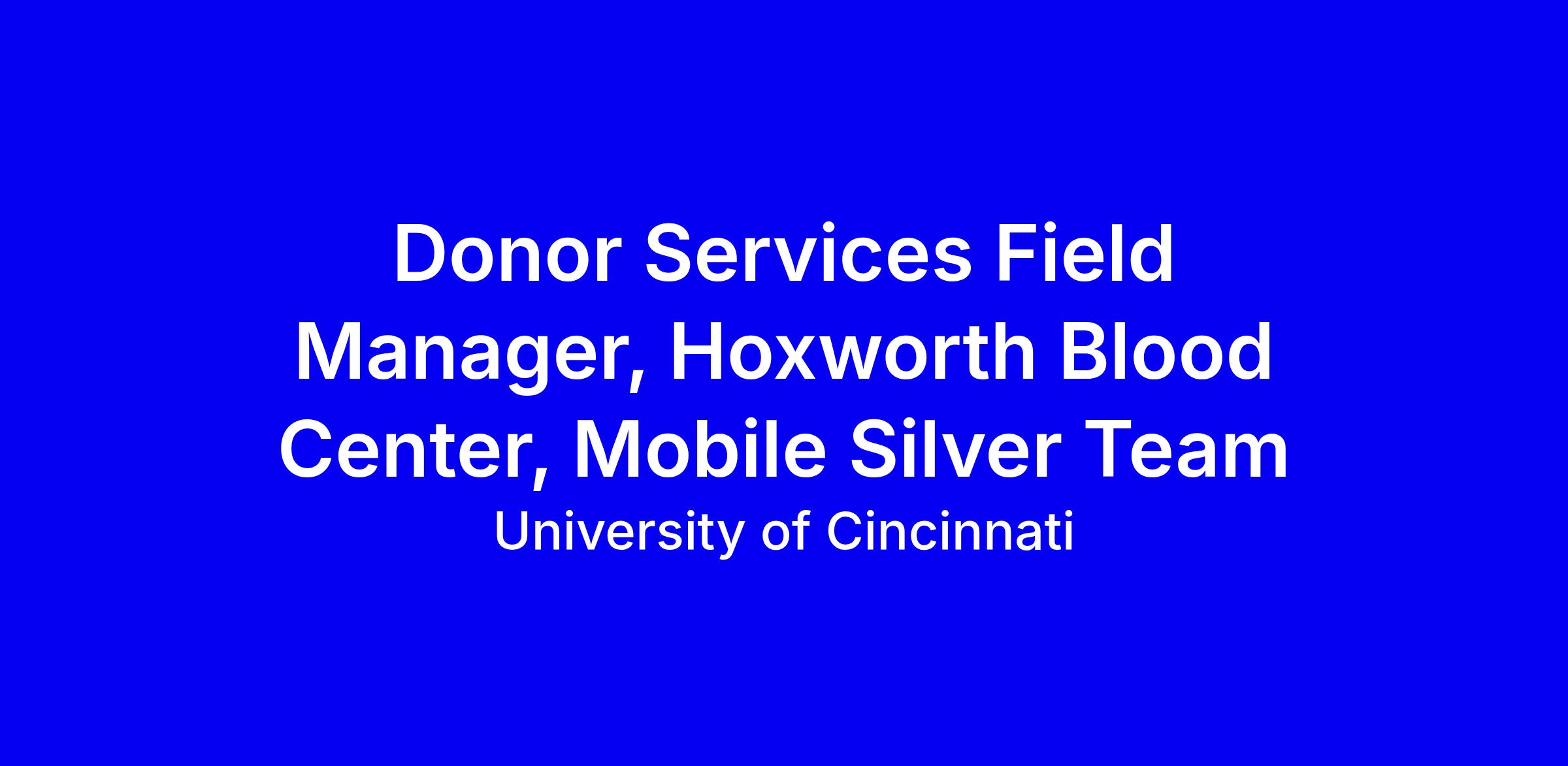 Hoxworth Blood Center at the University of Cincinnati is seeking a full-time Donor Services Field Manager to lead Mobile Silver Team, oversee donor-drawing operations, and ensure donor flow across assigned units. The role focuses on delivering donor care, achieving recruitment and collection goals, developing SOPs, training staff, and ensuring regulatory compliance. Qualifications include a Bachelor’s in healthcare management or related field (or nine years of relevant experience), five years of phlebotomy with three years supervisory experience, and proficiency in all automated collections with consistent performance; Automation Red Cell and Automated Platelet training are required. This onsite role requires internal UC applicants to apply via SuccessFactors; tailor your application to leadership, SOP development, regulatory compliance, and measurable collection results.