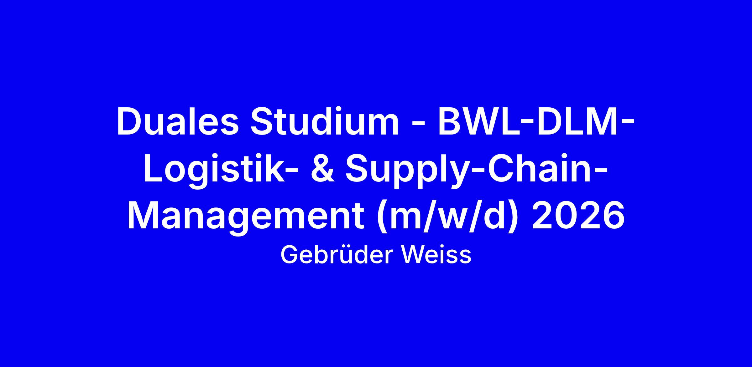 Gebrüder Weiss bietet dir ein Duales Studium BWL DLM Logistik- und Supply-Chain-Management (m/w/d) ab dem 01.09.2026 in Esslingen, DHBW Stuttgart, sechs Semesters, drei Jahre, komplett onsite und Vollzeit. Du bringst Interesse an betriebswirtschaftlichen Zusammenhängen sowie Logistikprozessen, analytisches Denkvermögen, Lernbereitschaft, Eigeninitiative, Zielstrebigkeit, Allgemeine Hochschulreife oder Fachhochschulreife, Organisationsgeschick, Teamfähigkeit, Kommunikationsstärke und ein kundenorientiertes internationales Mindset mit. Du unterstützt Planung, Steuerung und Optimierung von Logistik- und SCM-Prozessen, arbeitest in Logistik, Einkauf, Controlling und Vertrieb, übernimmst eigenständige Projekte, analysierst Kennzahlen und leitest Optimierungspotenziale ab. Bewerbungstipp: Nenne konkrete Beispiele aus Studium oder Praktika, zeige messbare Ergebnisse, betone Lernbereitschaft und Teamarbeit und kommuniziere offen zu Arbeitszeiten, Entwicklungsmöglichkeiten und Startdatum 01.09.2026.