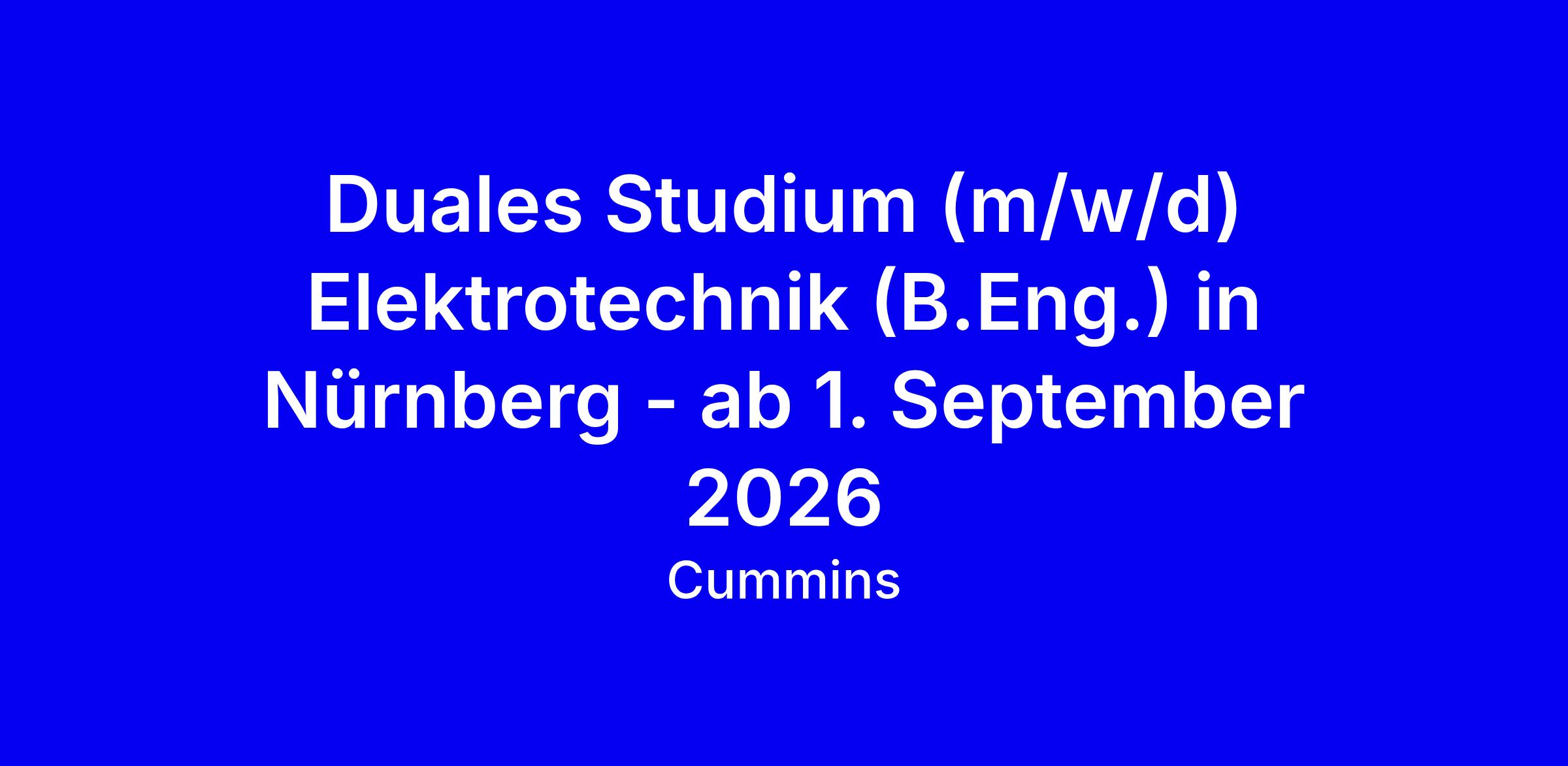 Cummins und Meritor Electric Vehicles Germany bieten ab dem 1. September 2026 in Nürnberg ein duales Studium Elektrotechnik (B.Eng.) an, das Hochschulwissen mit praktischer Arbeit in einem internationalen Technologiekonzern verbindet. Du arbeitest an Prüfstand und Validierung, Simulation, Programmierung mit Python, Fehleranalyse, Datenanalyse und internationaler Teamarbeit. Du solltest kurz vor dem Fachabitur oder Abi stehen, sehr gute Deutsch- und Englischkenntnisse mitbringen und eine Leidenschaft für Technik, Elektromobilität und Digitalisierung haben. Wichtig sind Teamfähigkeit, Eigeninitiative und interdisziplinäre Zusammenarbeit; Vielfalt und Inklusion werden aktiv gelebt. Vorteile: vollfinanziertes Studium, gestaffelte Vergütung, Urlaubsgeld, kostenloses Mittagessen, Englischkurs, Mentoring. Tipps: passe deinen Lebenslauf an, hebe relevante Mathematik/Physik-Projekte hervor, zeige Motivation für internationale Projekte, füge Zeugnisse hinzu und nenne den Standort Nürnberg.