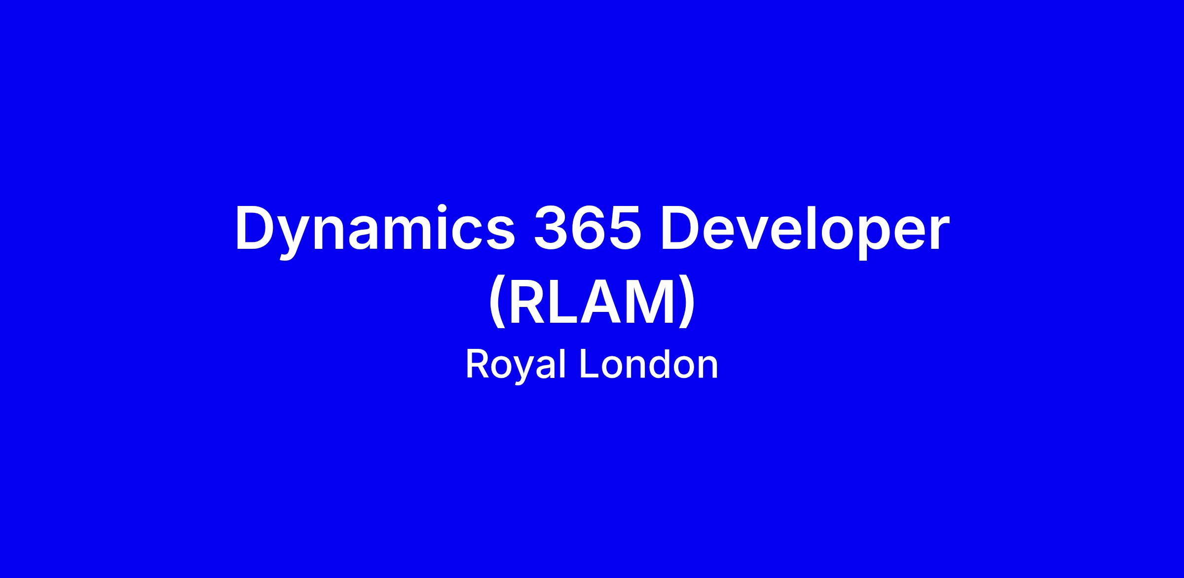 Job Title: Dynamics 365 Developer (RLAM)