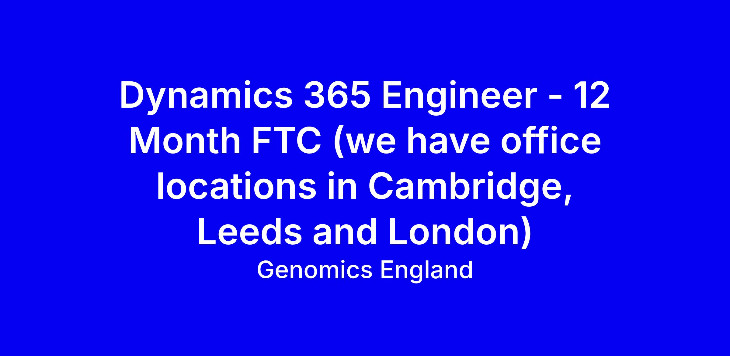 At Genomics England, our internal systems power research and clinical programmes with real world impact. Our Dynamics 365 platform supports key workflows, data flows and operational processes across Newborns and Research products and this role sits at the centre of that, shaping architecture, build quality and platform direction.