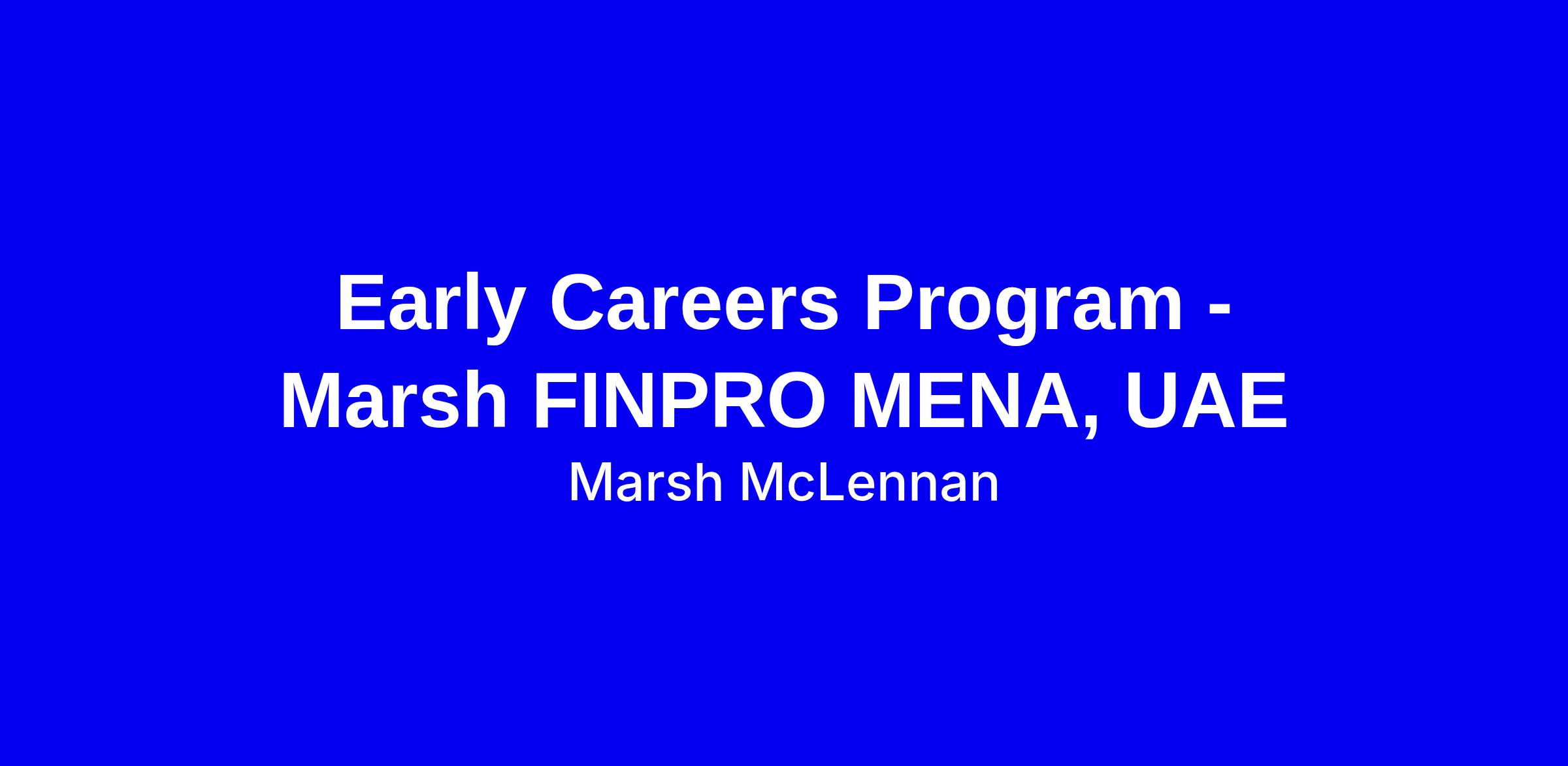 Early Careers Program - Marsh FINPRO MENA, UAE
