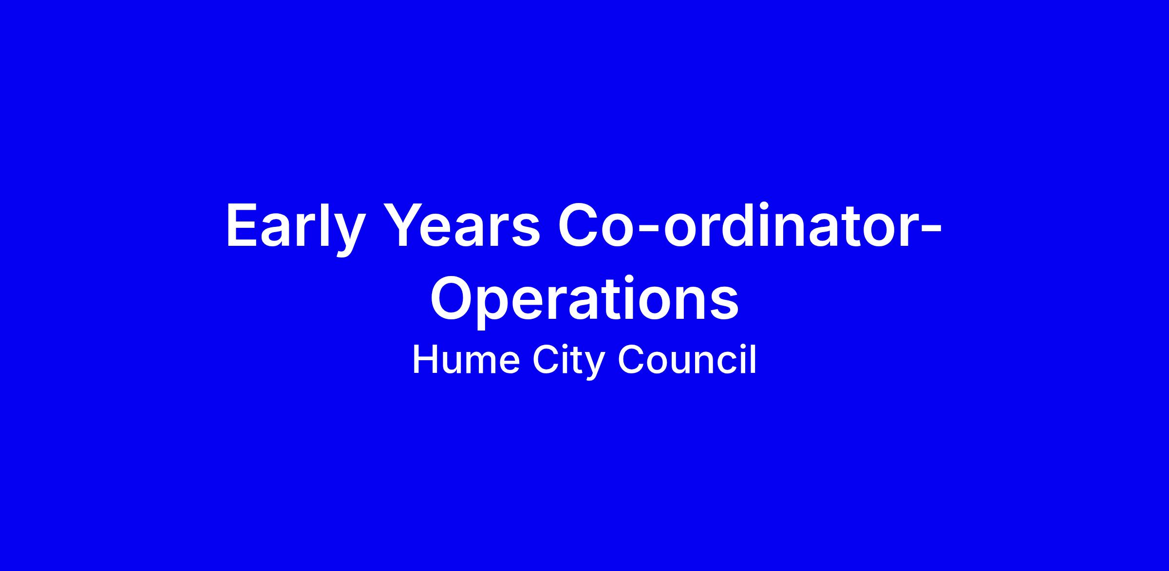 We are seeking an experienced and passionate Early Years Co‑ordinator to join our team and provide strategic leadership across Hume Council Early Years Services operating under our Early Years Management (EYM) model. This is a pivotal role for a dynamic leader who thrives on building strong teams, driving best practice, and ensuring high‑quality early learning experiences for children, families, and communities.
