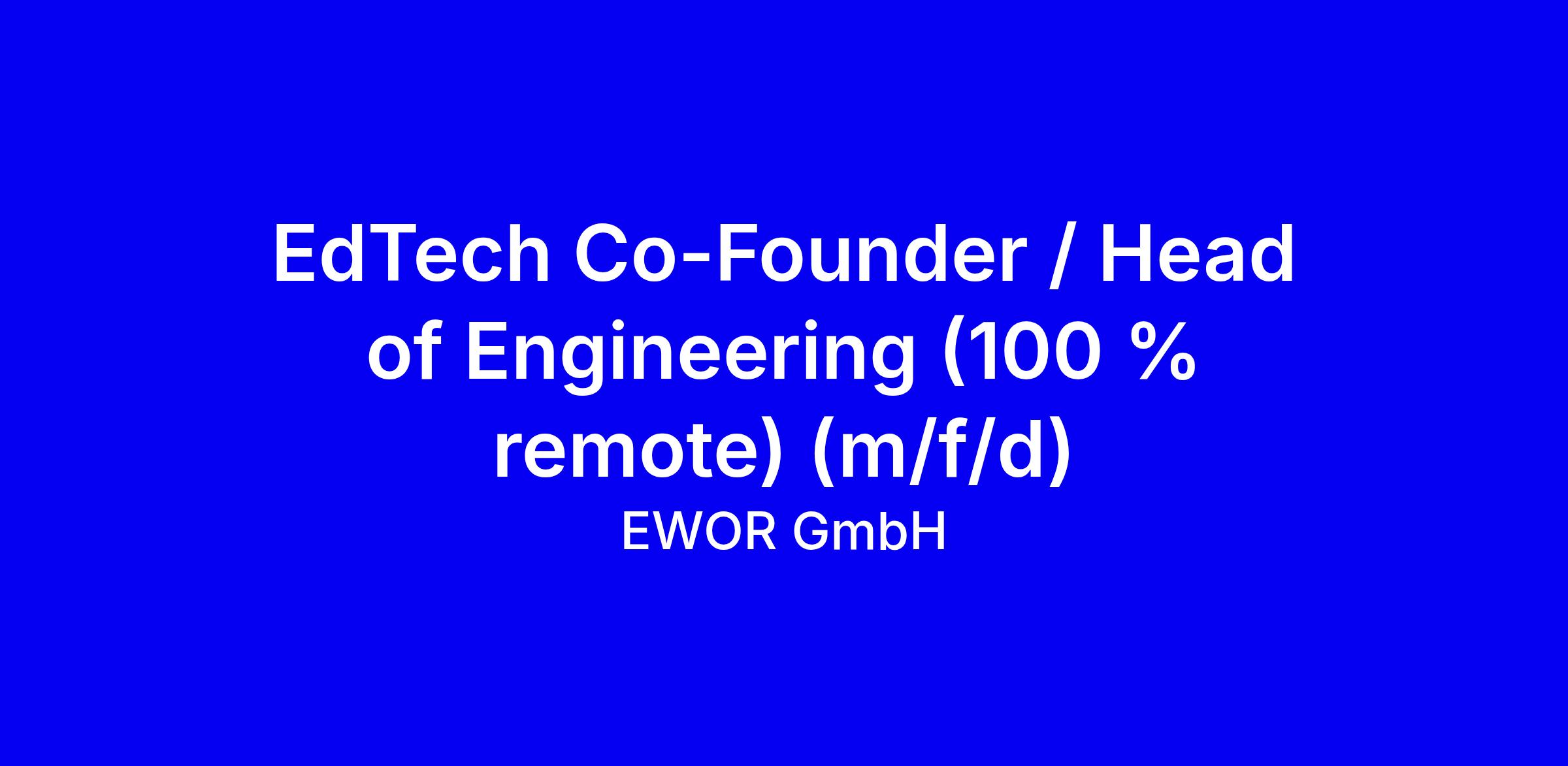 EWOR seeks an ambitious EdTech Co‑Founder and Head of Engineering for a 100% remote role. You can be employed with a salary or opt for up to €500k in funding, and you’ll enjoy weekly 1:1 sparring with unicorn founders, access to a top founder and investor network, and hiring support from a 50,000 professional network. You will own and run an EdTech startup, drive product-market fit, and build a sales and marketing engine while receiving coaching to secure multi‑million euro funding within 12 months. Ideal candidates are in Europe or the Americas or willing to relocate, and ready to scale to €100M+ in revenue with excellent English. In your application, present your startup thesis, leadership track record, PMF milestones, and a concise plan to leverage EWOR’s network for rapid growth.