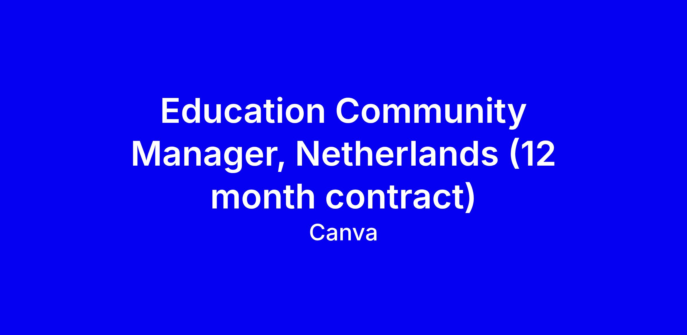 Canva is hiring an Education Community Manager for a 12 month contract in Amsterdam, focused on introducing Canva for Education to teachers and driving adoption through community programs, events and cross functional campaigns. You’ll lead the Education Community, organize online and offline events, create culturally relevant content, collaborate with Growth Marketing and the sales team, and expand the Canvassador and local partner networks while staying ahead of education trends. To apply, tailor your CV to prove a track record in education or edtech community growth, quantify impact with metrics, highlight event and content skills along with video editing, and show Dutch and English proficiency, pronouns, and any adjustments needed.