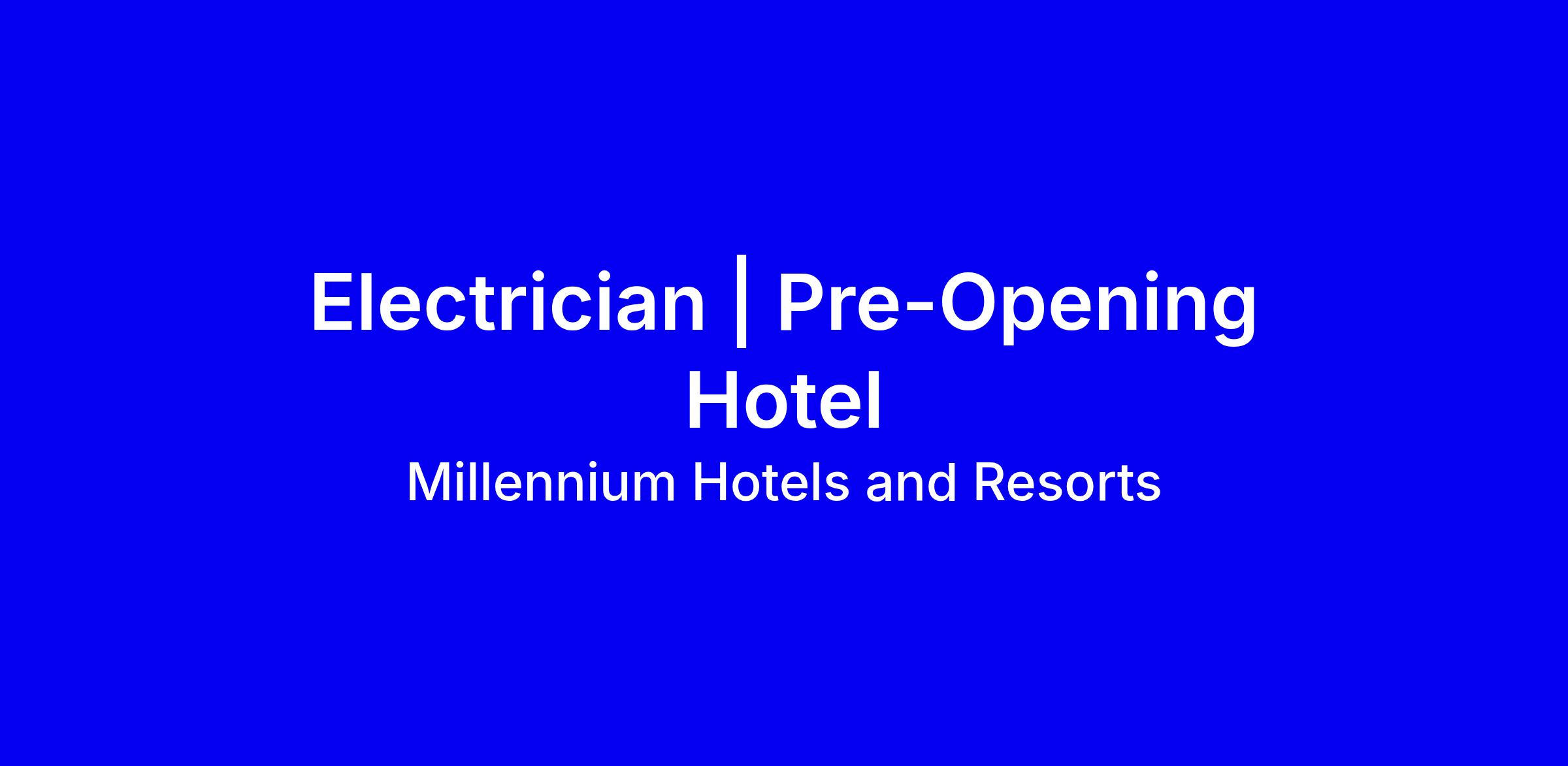 Millennium Hotels and Resorts seeks a skilled Electrician to join its Engineering team at a pre opening hotel in Deira, Dubai. The role installs, maintains and repairs electrical systems, reads drawings, troubleshoots faults, responds to breakdowns, and keeps precise records while supporting preventive maintenance and ensuring safety, hotel procedures, and local regulations. Ideal candidates have proven hotel or commercial building experience, a solid grasp of electrical systems and safety standards, and the ability to work independently and with a team. To apply, tailor your CV to highlight hotel maintenance, emergency response, and documentation; include relevant certifications and licenses; provide concrete examples of safety compliance and fault resolution; be prepared to start in a fast paced pre opening phase. Only shortlisted candidates will be contacted.
