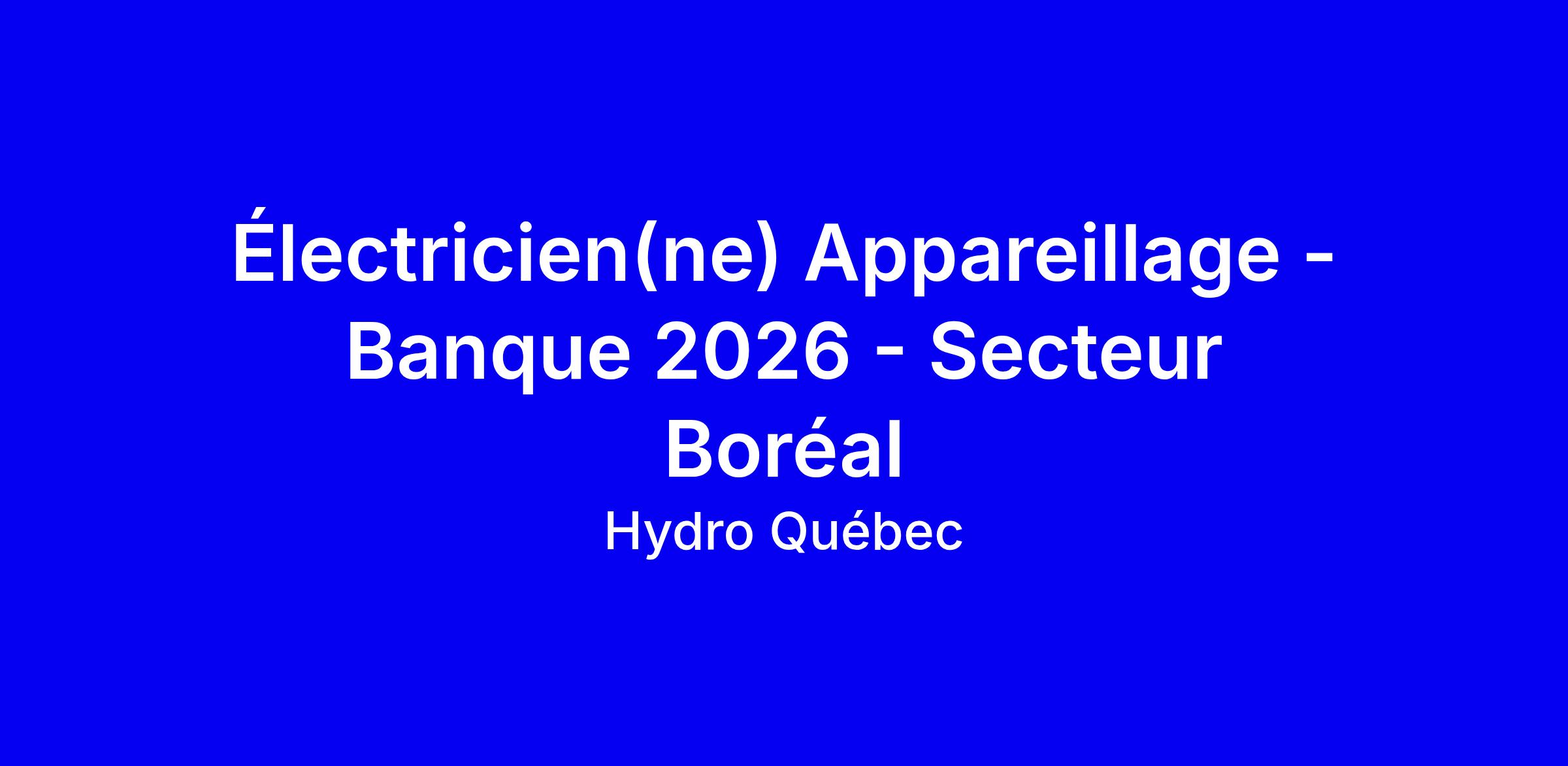 Hydro-Québec recherche un(e) Électricien(ne) Appareillage pour la Banque 2026 Secteur Boréal, poste temporaire de 12 mois sur site à Québec avec déplacements prolongés dans les installations Boréal (Nunavik, Haute-Mauricie, basse Côte-Nord et Île d’Anticosti) et conduite d’un véhicule; des voyages par avion seront fréquents. Le candidat idéal détient un DEP en Électromécanique de systèmes automatisés, Électricité ou Électricité d’entretien, avec les équivalents DEC ou CEC mentionnés dans l’offre. Principales tâches: vérifier, réparer et dépanner les appareils et équipements, installer et mettre en route l appareillage, effectuer des manœuvres d opération et prendre des mesures de sécurité, y compris premiers secours. Le processus comprend une évaluation technique en présentiel; conseils pour postuler: adaptez votre CV et vos diplômes à l’offre, mettez en avant l’esprit d’équipe, l’agilité et l’orientation résultats, et démontrez votre disponibilité pour les déplacements et la mobilité.