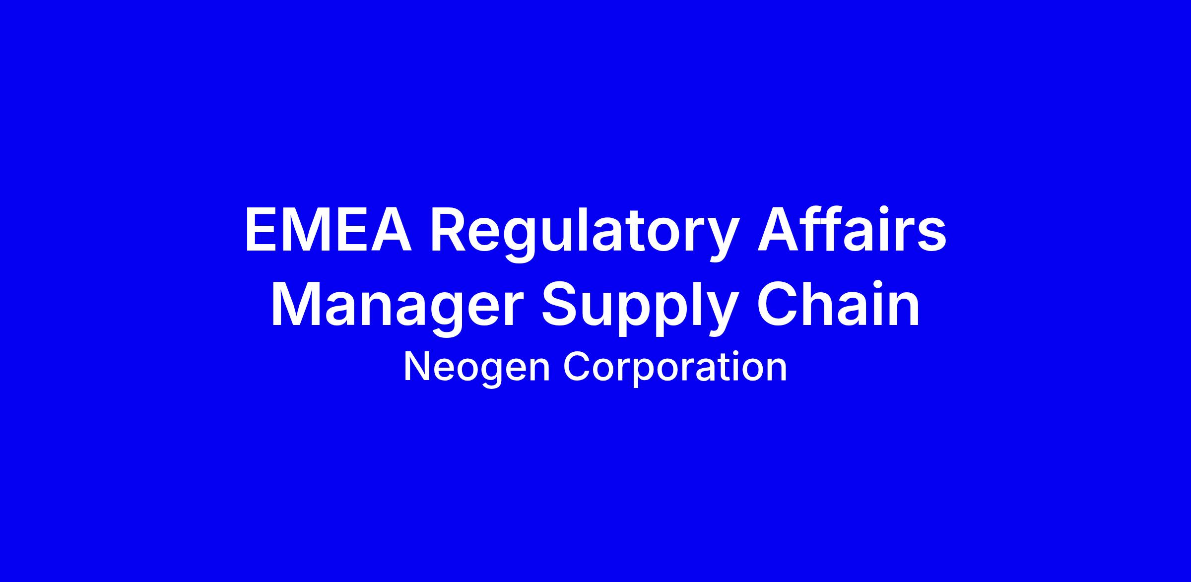 Neogen Corporation is seeking an EMEA Regulatory Affairs Manager in supply chain based in Lucerne, Switzerland, with a hybrid work model to support international supply chains and ensure that products and processes meet EU and global regulations, including REACH SVHCs, EU/EMA for IVDs and Medical Devices, ECHA BPR, RoHS, WEEE, and GHS, with oversight of animal by products and packaging. The role partners with Global Trade Compliance, Operations and Supply Chain to manage regulatory compliance, documentation, QA collaboration, supply chain oversight, risk management and cross functional work with R&D, manufacturing and logistics, while maintaining regulatory data and SDS. Requirements include a Bachelor of Science in chemistry or related field, proven regulatory experience and familiarity with TRACES, Lisam, REACH IT, R4BP, IUCLID and APHA permits, and the ability to travel up to 15 percent. To strengthen your application tailor your resume to demonstrate concrete regulatory submissions, cross functional collaboration, successful navigation of regulatory changes and fluency with regulatory IT systems, quantify impact where possible and align your narrative with Neogen’s mission and values.