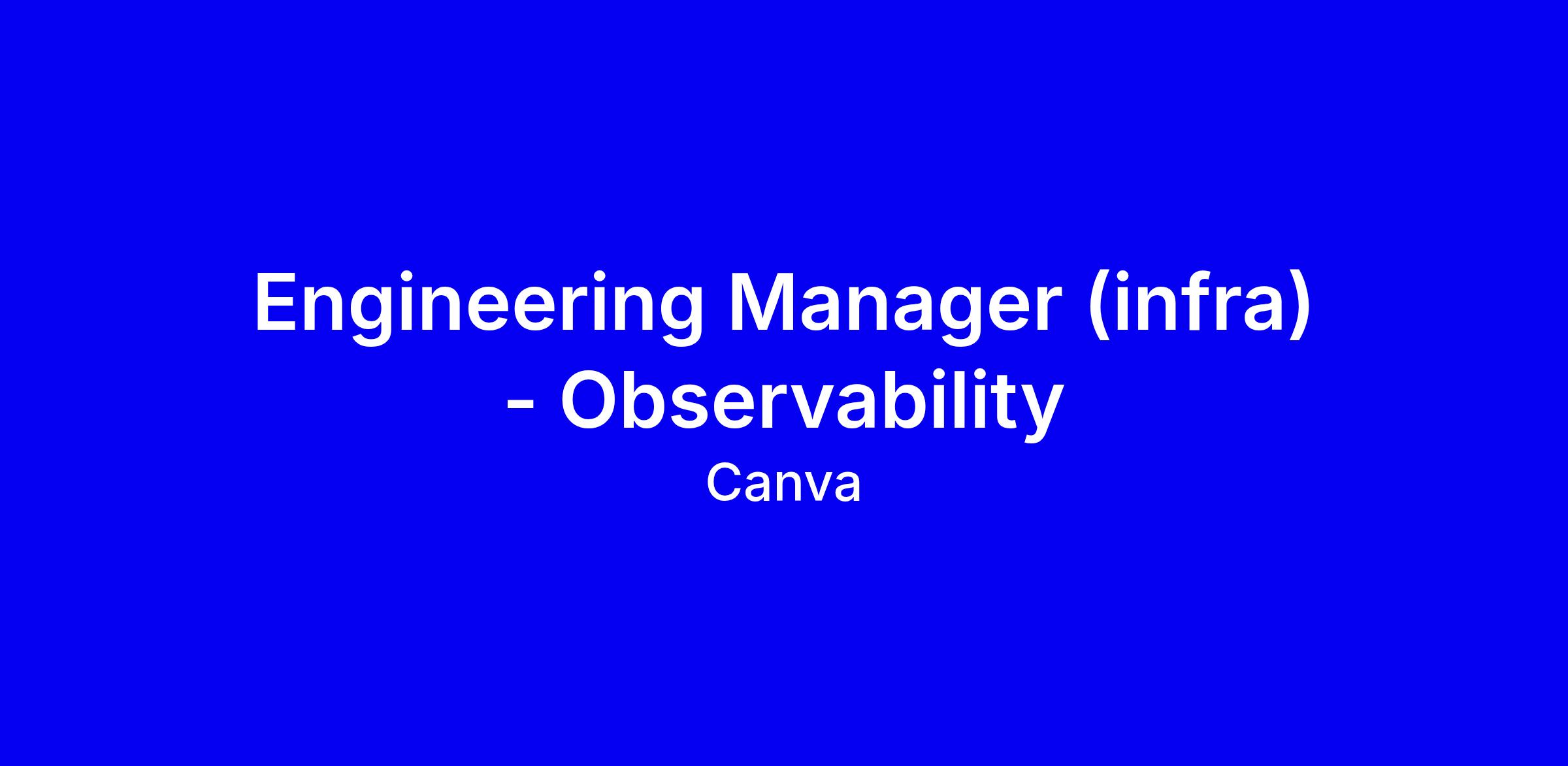 Canva is seeking an Engineering Manager in Infrastructure Observability to lead a high performing team focused on reliability, tracing and exception systems, and to drive modernization of the observability stack. You’ll partner with Engineering Managers and Staff Engineers to define long term strategy, translate goals into clear roadmaps, and ensure our platforms deliver intuitive developer experiences. The ideal candidate has technical leadership and people management experience, has built or operated large scale distributed cloud systems AWS preferred, and cares about reliability and developer experience; OpenTelemetry, Grafana, Mimir, ClickHouse, or Go are nice to have. Apply with metrics driven examples of impact, showcase cross functional collaboration, and highlight communication and alignment with Canva culture and hybrid work options.