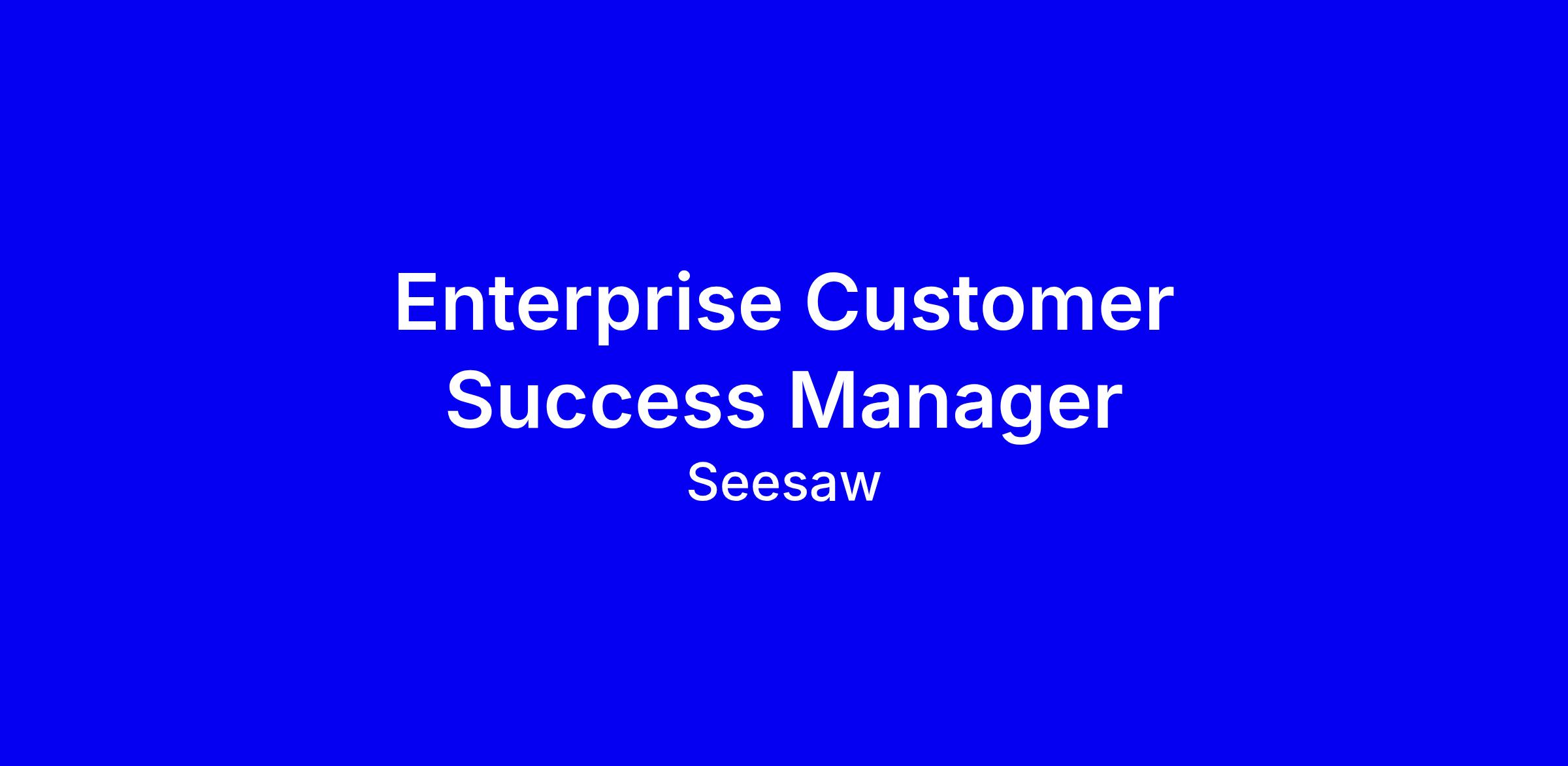 Seesaw is hiring an Enterprise Customer Success Manager in the United Kingdom for a full time onsite role to own post sales relationships with the company’s largest district accounts, drive renewals and expansions, and lead data driven strategy sessions with district stakeholders while collaborating with sales, product, support and finance teams. The ideal candidate has at least five years in a quota bearing, customer facing role and a proven end to end lifecycle management track record, with educational technology experience preferred for the UK and nearby regions. Travel up to 25% and UK work authorization are required. To apply, tailor your resume to quantify renewal and expansion wins, highlight cross functional collaboration, and demonstrate adaptability in a dynamic K 12 environment; show your passion for joyful, inclusive learning and a concise value proposition for Seesaw.