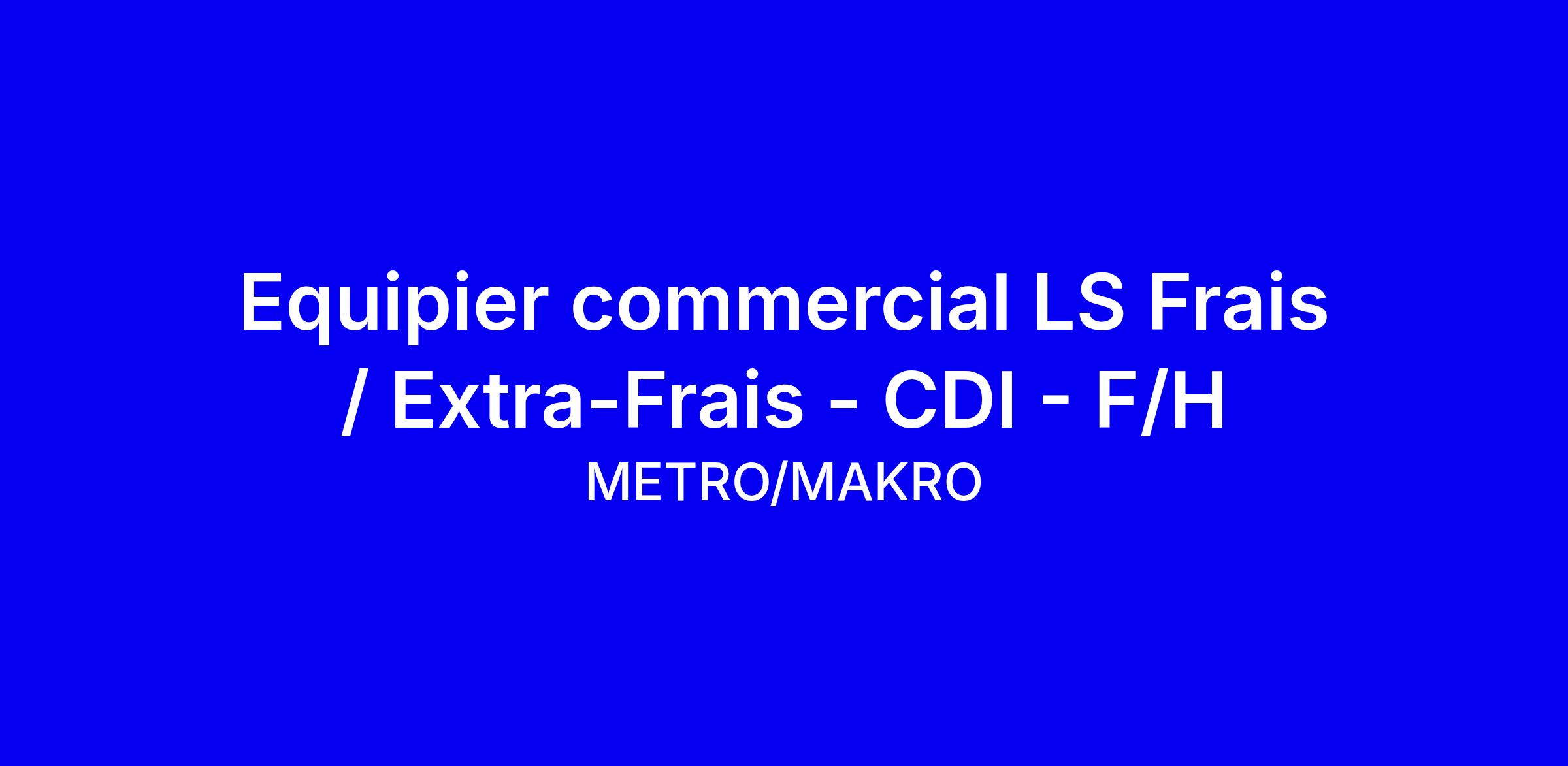 METRO cherche un Equipier commercial LS Frais / Extra-Frais en CDI à Paris Halles pour être le premier contact des clients professionnels, écouter leurs besoins, recommander les bons produits, informer sur les offres, collecter les avis et assurer le remplissage des rayons et la vérification des prix. Vous vivrez une ambiance motivante avec une intégration et une formation continue, et des possibilités d’évolution. Package salarial attractif: salaire sur 13 mois, primes d’intéressement et de participation, primes de challenge, aide à la mobilité, dimanches libres, 15% de remise, congés spéciaux, remboursement de 60% du titre de transport. Postuler en valorisant rigueur, esprit d’équipe et sens du relationnel, votre appétence pour le service client et votre engagement pour l’inclusion.