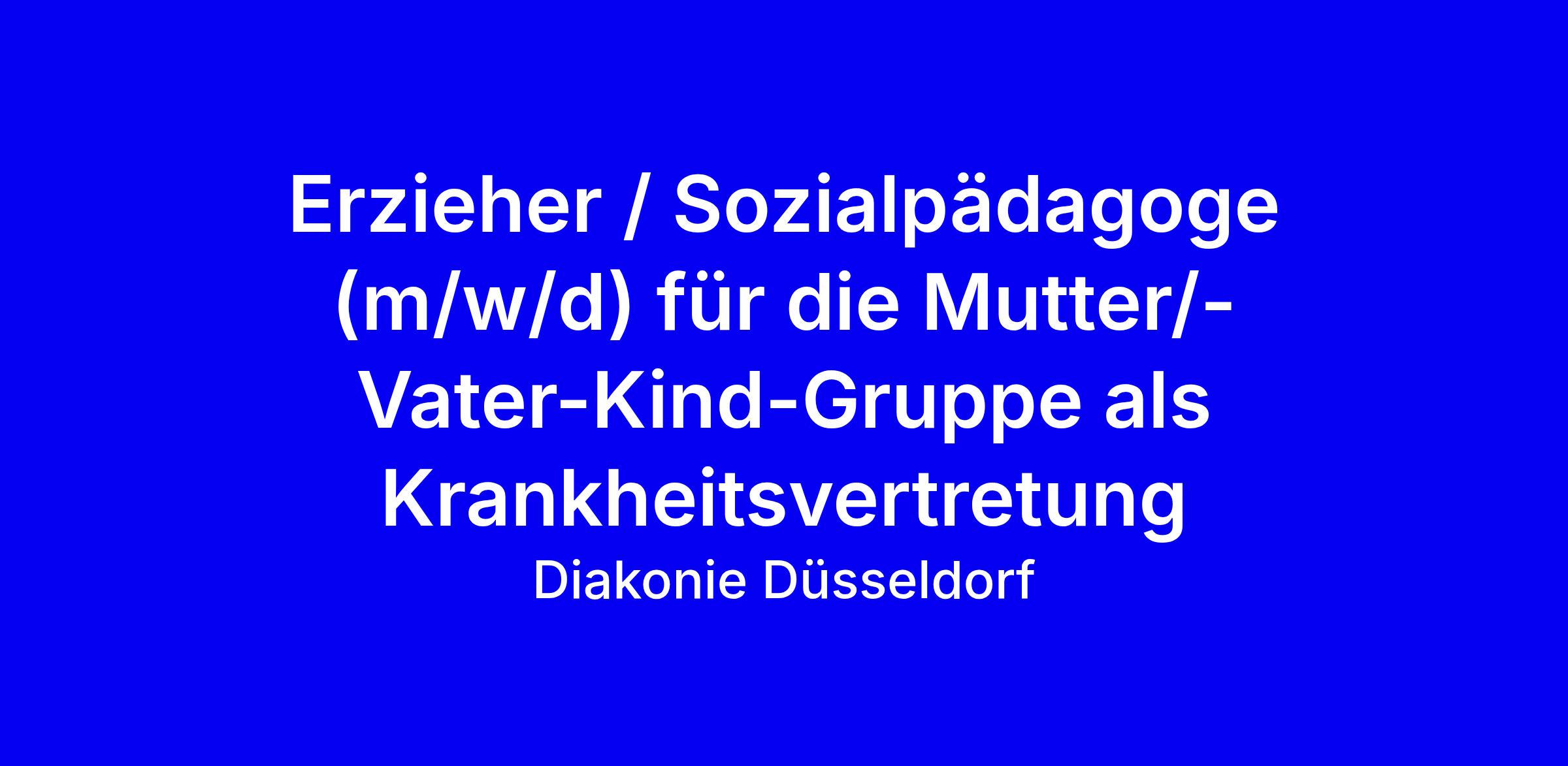 Die Diakonie Düsseldorf sucht flexibel einsetzbare Erzieher/Sozialpädagogen (m/w/d) für die Mutter-/Vater-Kind-Gruppe als Krankheitsvertretung in Düsseldorf, Voll- oder Teilzeit ab 19,5 Stunden pro Woche, zunächst befristet bis August 2026. Sie unterstützen 8 Mütter/Väter und ihre Kinder in einer geschützten Umgebung, helfen bei Versorgung, Erziehung und Alltagsbewältigung und dokumentieren Tages- sowie Entwicklungsverläufe; darüber hinaus springen Sie bei krankheitsbedingten Ausfällen oder Urlaubsvertretungen kurzfristig ein und arbeiten in Schichtdiensten, auch Nachtbereitschaften an Wochenenden und Feiertagen. Erwartet werden Erfahrungen mit Schwangeren, jungen Eltern, Krisensituationen und Kenntnisse in frühkindlicher Entwicklung; empathische, wertschätzende, lösungs- und ressourcenorientierte Haltung sowie Belastbarkeit. Bewerben Sie sich über Jetzt bewerben, achten Sie auf Ihre Verfügbarkeit und Ihre Bereitschaft zu christlichen Werten; Bewerbungen von Menschen mit Behinderungen werden bevorzugt berücksichtigt.