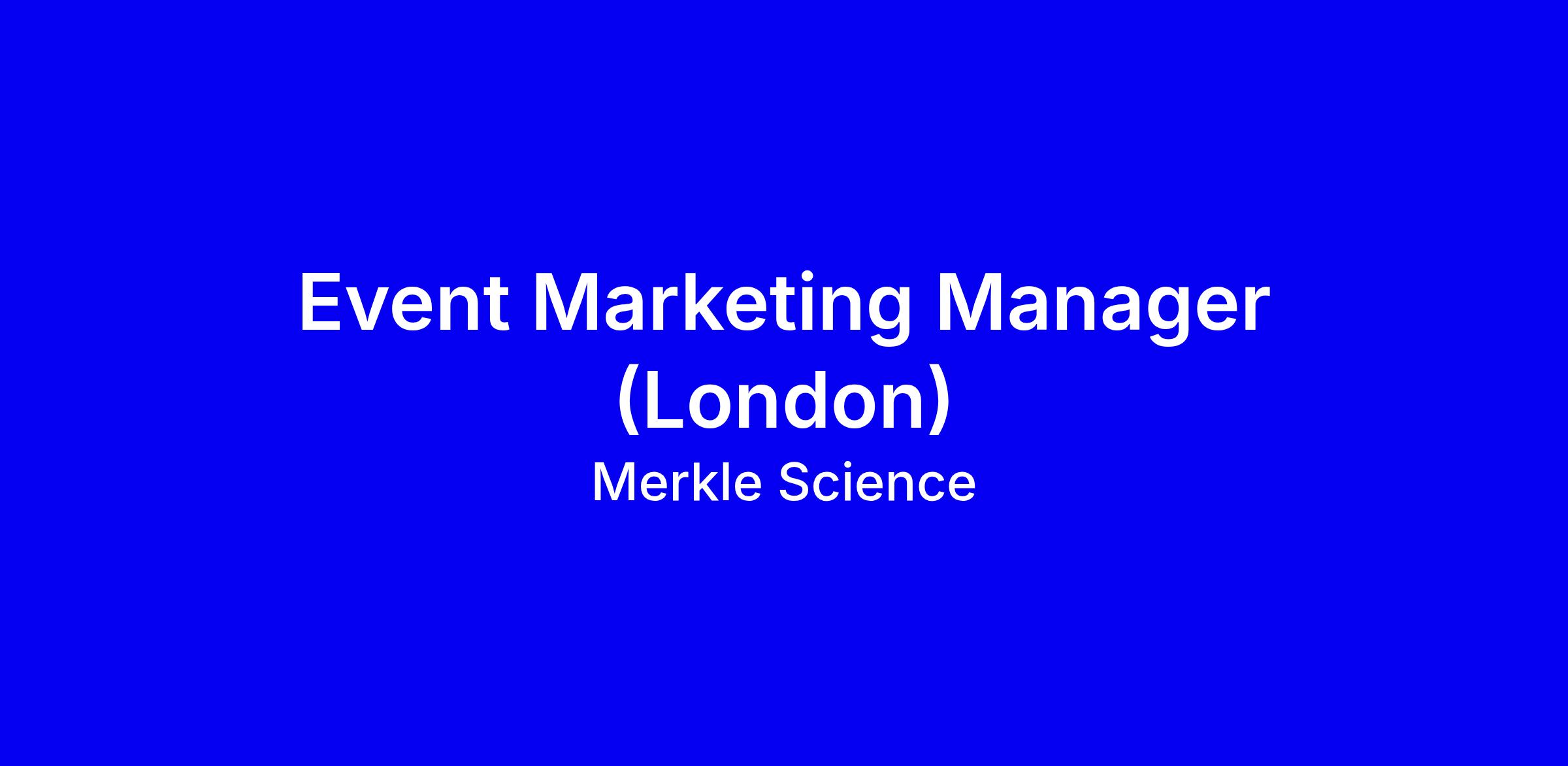 Merkle Science seeks an Event Marketing Manager in London to lead event programs that drive lead generation and pipeline for a blockchain transaction monitoring company. You will partner with Account Executives, plan and execute events, define objectives and KPIs, conduct post-event analyses, manage budgets and vendor relationships, and collaborate with Sales and stakeholders. Requirements: at least two years in event or field marketing with strong trade show management, B2B or B2G experience, Salesforce proficiency, and the ability to juggle multiple priorities and present to senior leadership. Travel up to 20% expected. Tips: tailor your resume with measurable results, show budget ownership and cross-functional wins, and align with Merkle Science’s mission and benefits.
