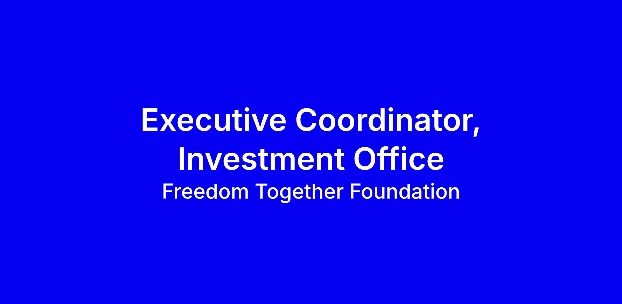 The Freedom Together Foundation seeks nominations and applications for the position of Executive Coordinator for the Investment Office. This role provides critical operational, administrative, and process coordination support to ensure the effective functioning of the foundation’s investment activities.
