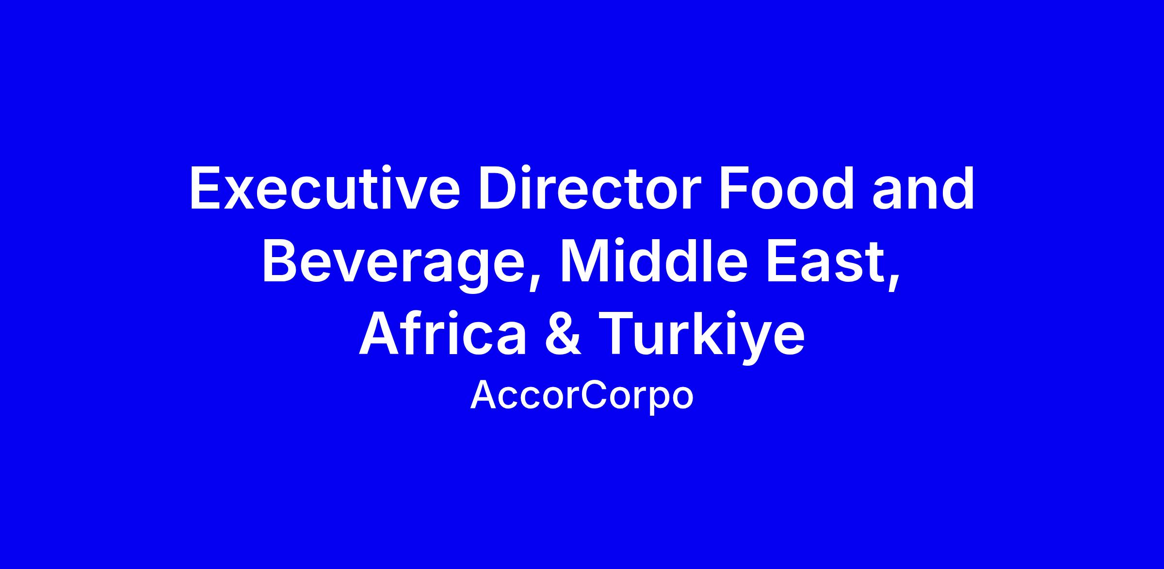 AccorCorpo seeks an Executive Director of Food & Beverage for MEA and Türkiye to develop and execute regional F&B strategies aligned with global direction, drive guest satisfaction, revenue growth, and operational excellence. The role leads project delivery for new builds and renovations, mentors senior teams, and builds strong owner and stakeholder relationships while monitoring KPIs, brand standards, and cost optimization in partnership with Corporate Procurement. The ideal candidate has 15+ years in F&B leadership within large international hotel groups or leading restaurant brands, proven P&L ownership and multi-market revenue growth, and deep MEA&T market knowledge. To apply, tailor your resume to highlight regional leadership, cross-functional collaboration, and measurable results, show travel readiness, and align with Accor's values and commitment to diversity.