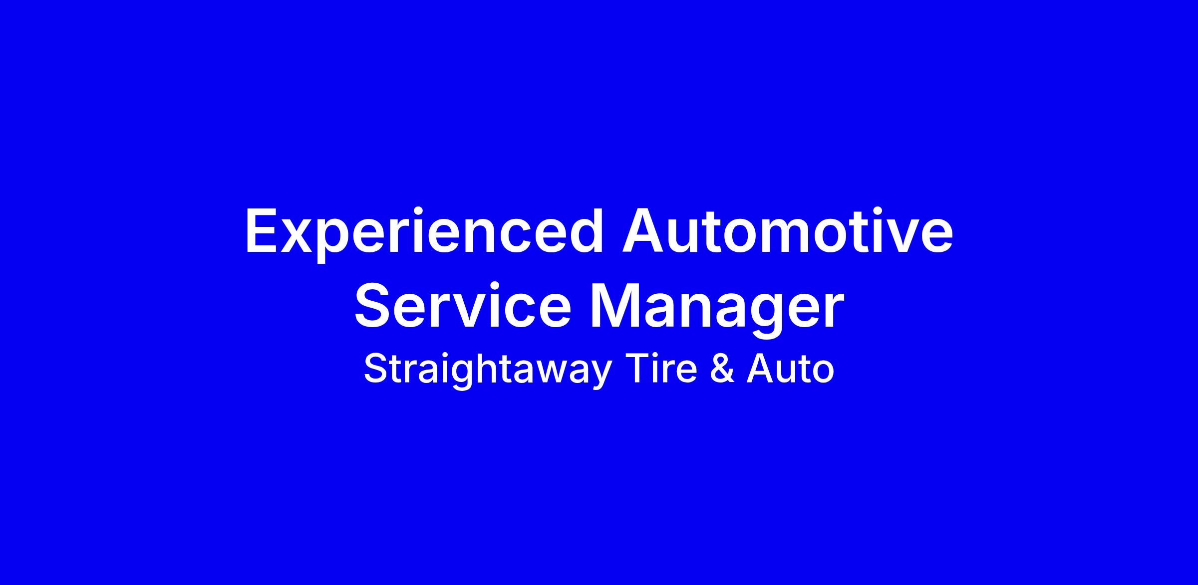 Straightaway Tire & Auto is seeking an experienced Service Manager for a high performing Loveland Fort Collins location. This full time onsite role offers base plus performance bonuses typically totaling $90k–$120k, plus a full benefits package, PTO, paid holidays, and a 401(k) with company match, with clear advancement within a stable family founded organization and strong expansion plans. You will lead daily operations, mentor technicians and advisors, drive sales and customer satisfaction, oversee KPIs, staffing, and workflow, and help build a positive, growth minded shop culture. The right candidate has a proven automotive service leadership track record, is organized, decisive, and thrives on improving the customer experience under pressure. To apply, tailor your resume to highlight leadership impact, KPI ownership, ongoing training, and show how you develop people and accountability; all inquiries handled discreetly.
