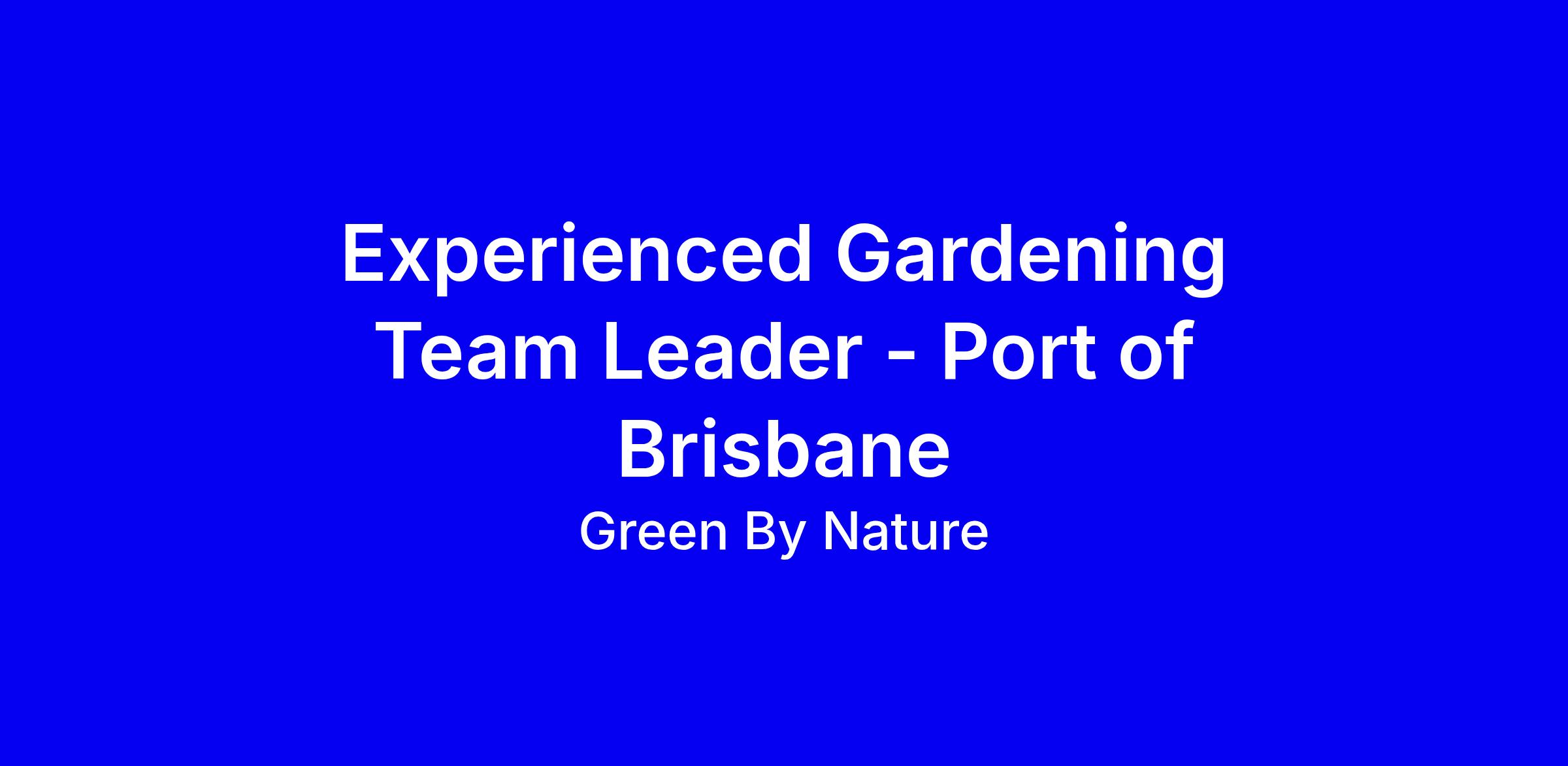 As a Team Leader, you will be responsible for leading a team to maintain and enhance green spaces across our various contracts within Port of Brisbane