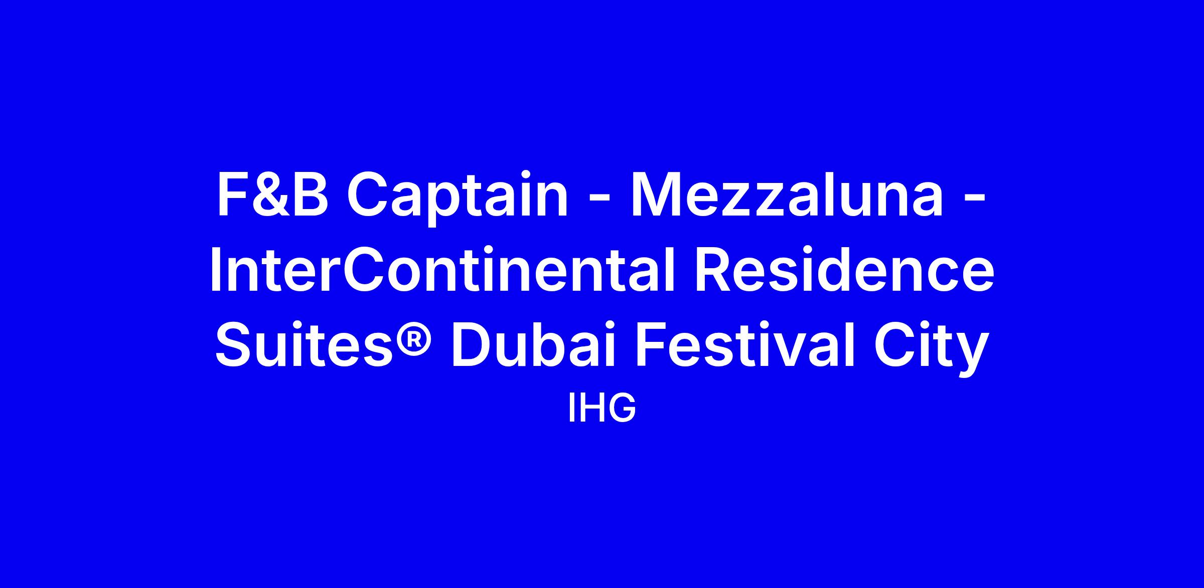 Do you see yourself as a F&B Captain - Mezzaluna for InterContinental Residence Suites® Dubai Festival City?