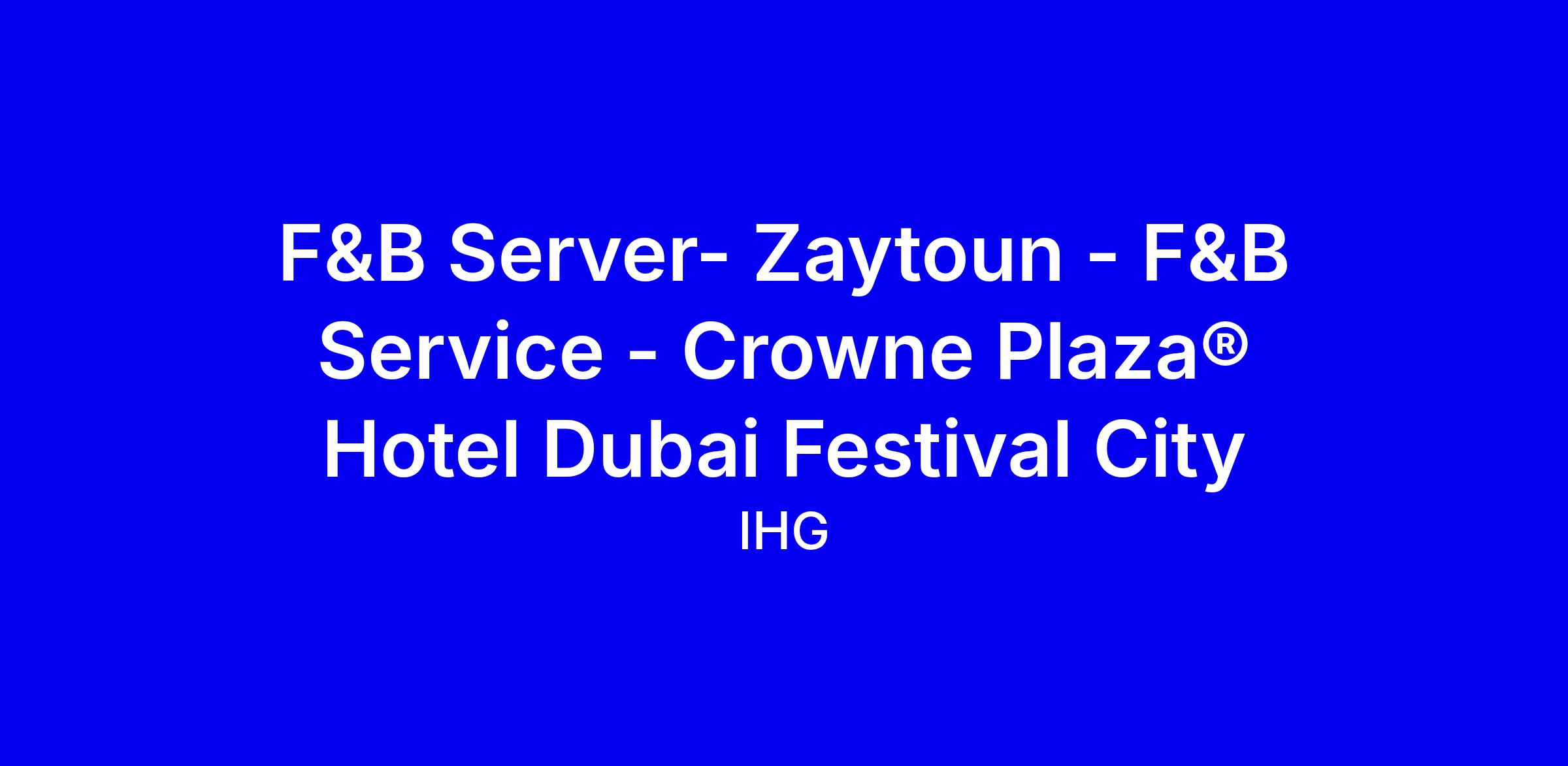 Do you see yourself as a F&B Server for our outlet Zaytoun at Crowne Plaza® Dubai Festival City