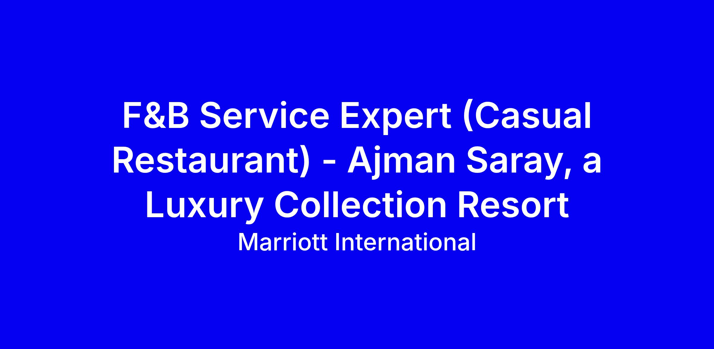 Marriott International seeks a F&B Service Expert for Ajman Saray, a Luxury Collection Resort, to deliver memorable dining through proactive guest service and clear kitchen communication. The role is full-time and on-site in Ajman, UAE, with no supervisory duties and a high school diploma or GED plus less than one year of related experience preferred. Candidates must be ready to stand for long periods, manage menu information, and perform physical tasks up to 25 pounds (50 pounds with assistance) while upholding safety, quality standards, and a professional appearance. To apply, tailor your resume to highlight hospitality instincts, reliability, teamwork, and a genuine guest-first mindset, plus a readiness to learn quickly.